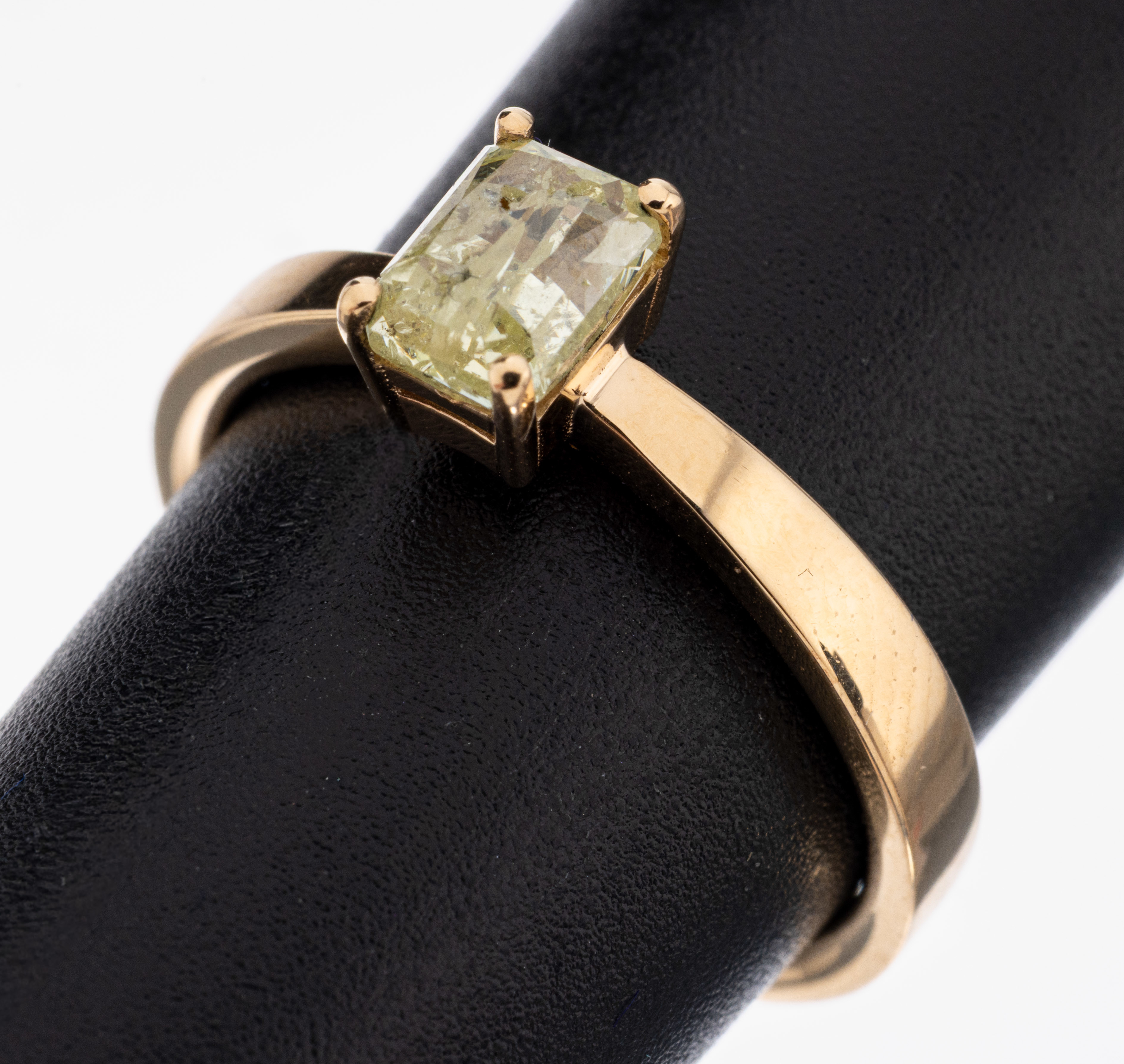 18 kt gold diamond ring , Rose G 750/000, diamond in emerald cut 1.00 ct Yellow (fancy)/p