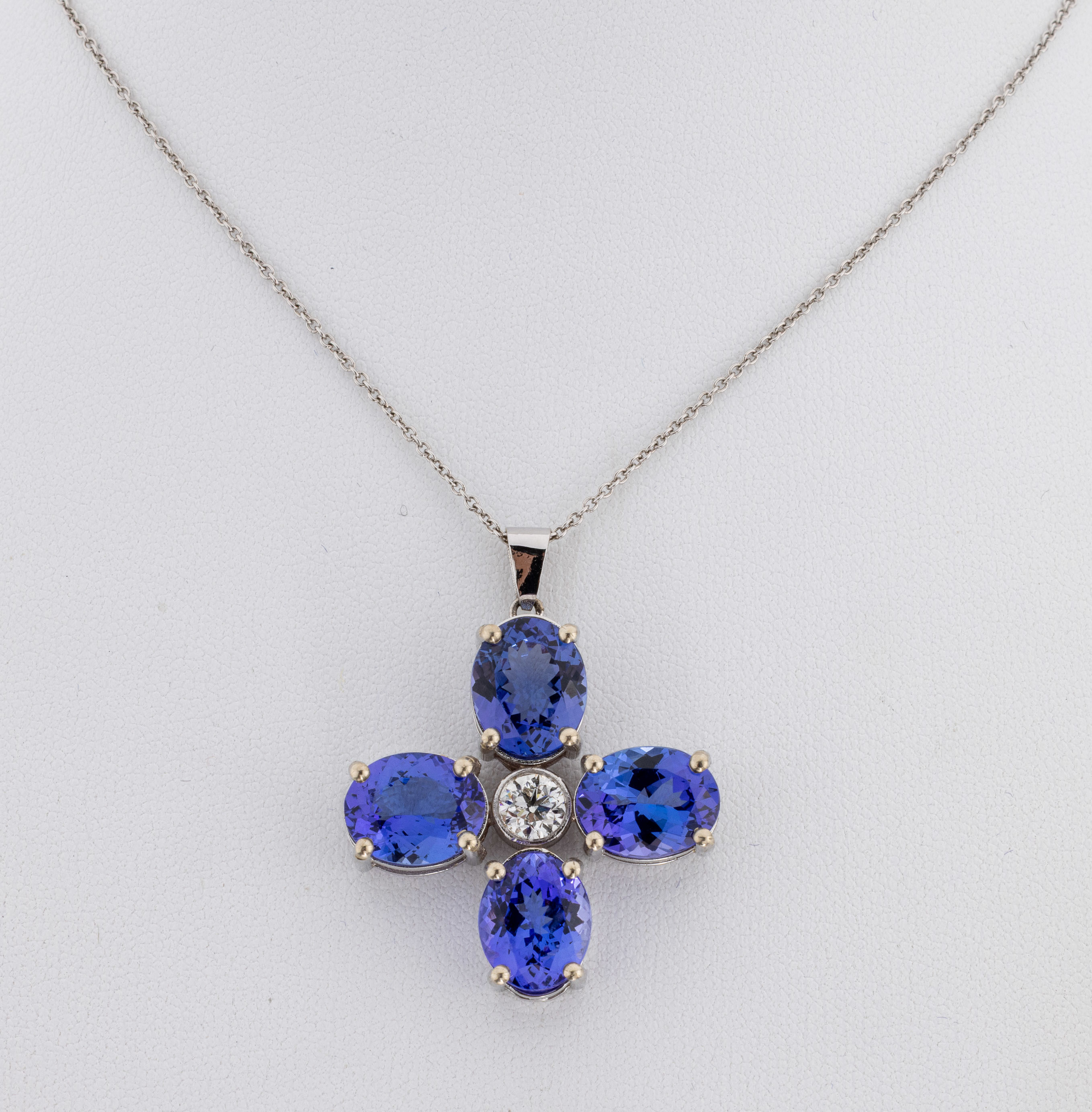 10 kt Gold Tansanit-Brillant-Anhänger, WG 417/000, Blütenform, 4 ovalfacett. Tansanite