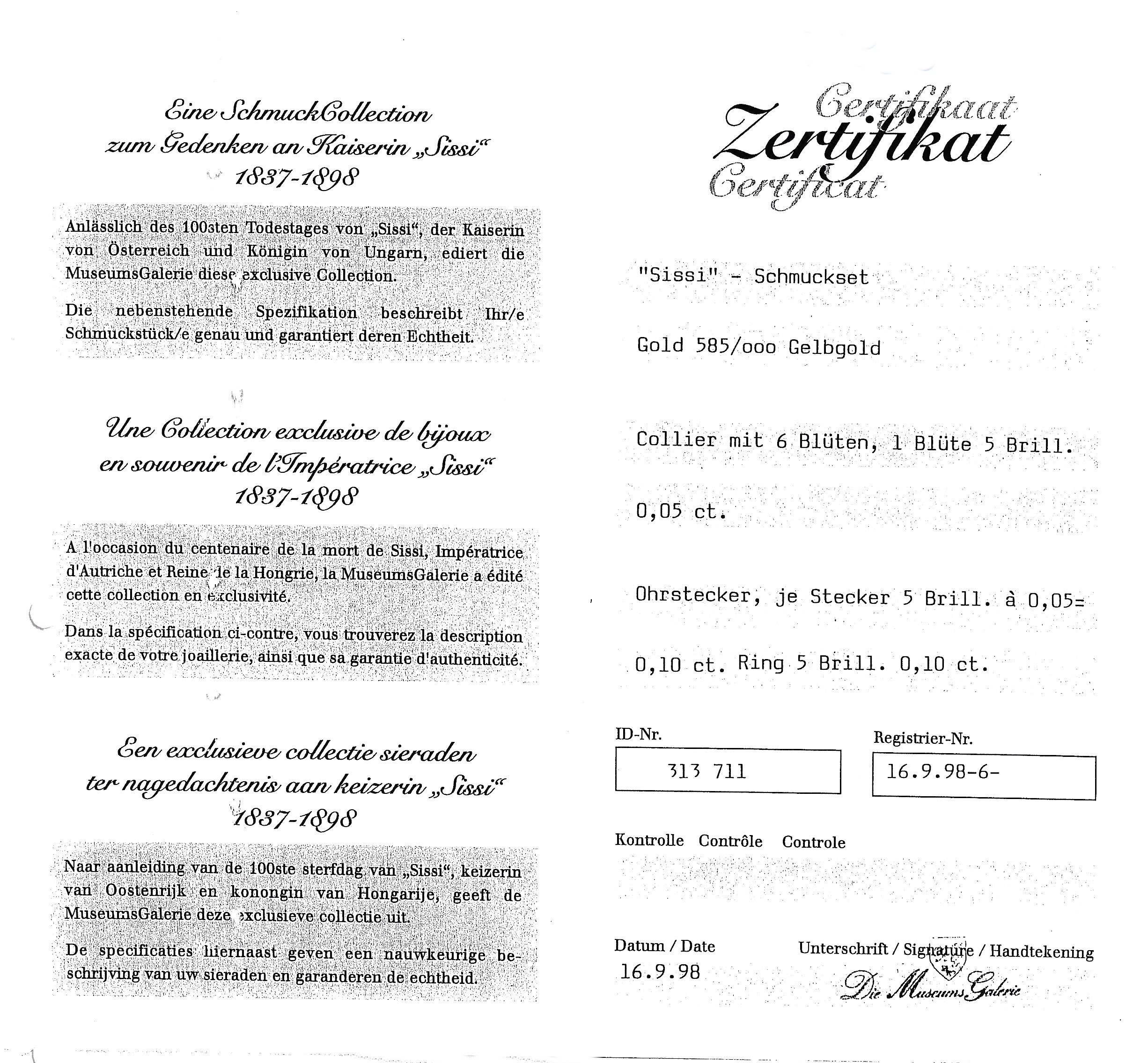 14 kt Gold Diamant Collier, "Sissi", GG 585/000, anlässlich des 100. Todestages