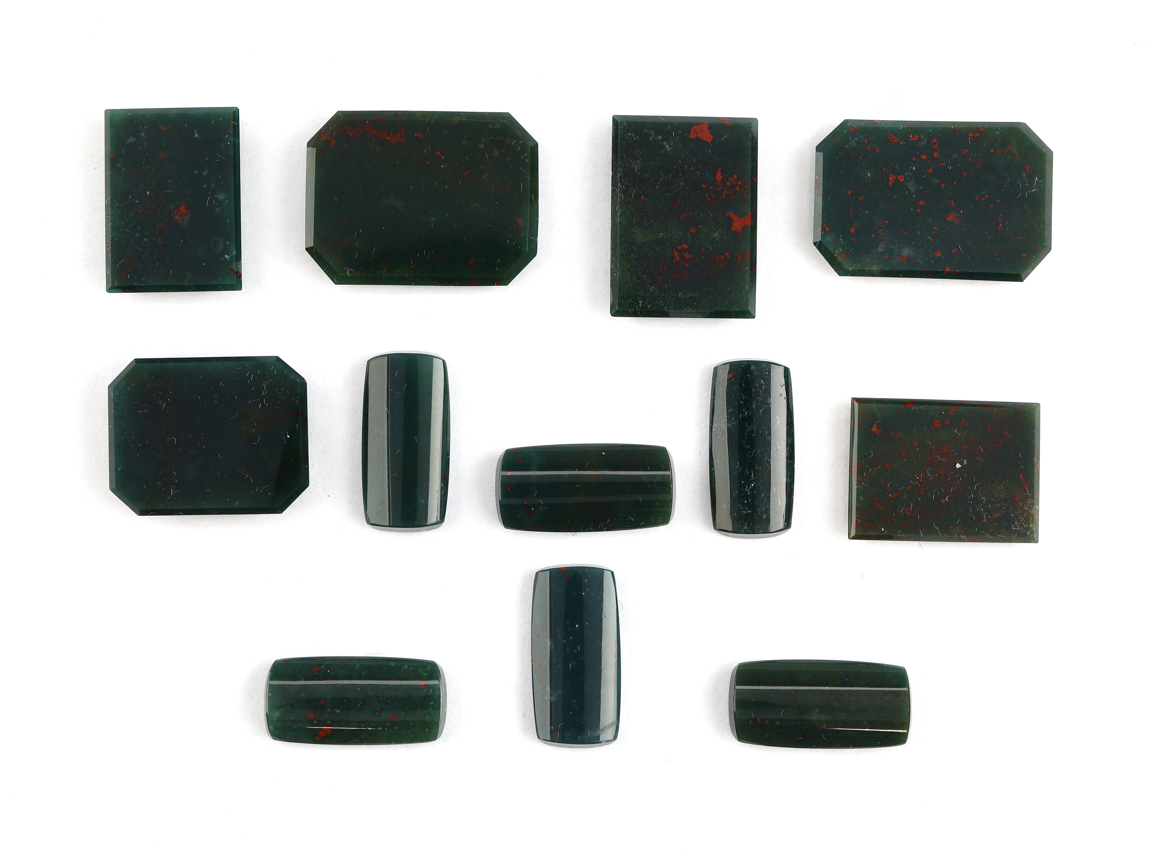 Lot 12 lose Heliotrop-Platten, zus. ca. 50.2 ct, versch. Größen und Formen Schätzpreis: 580, - EUR
