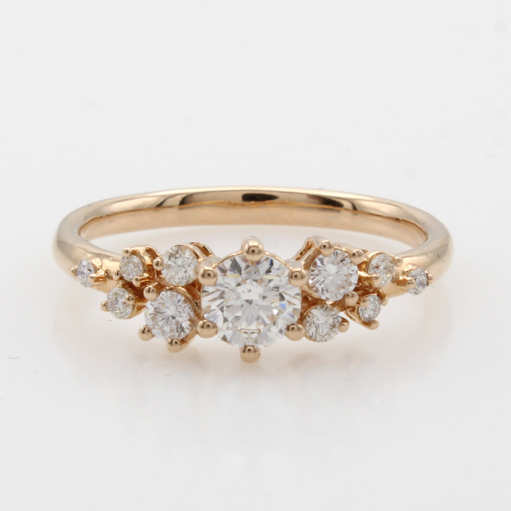 Ring mit Brillanten, RoséG 585/000, Solitär ca. 0.40 ct u. Besatzbrill. in versch. Größen zus. ca. 0.25 ct Weiß/si, RW ca. 54 Schätzpreis: 2370, - EUR
