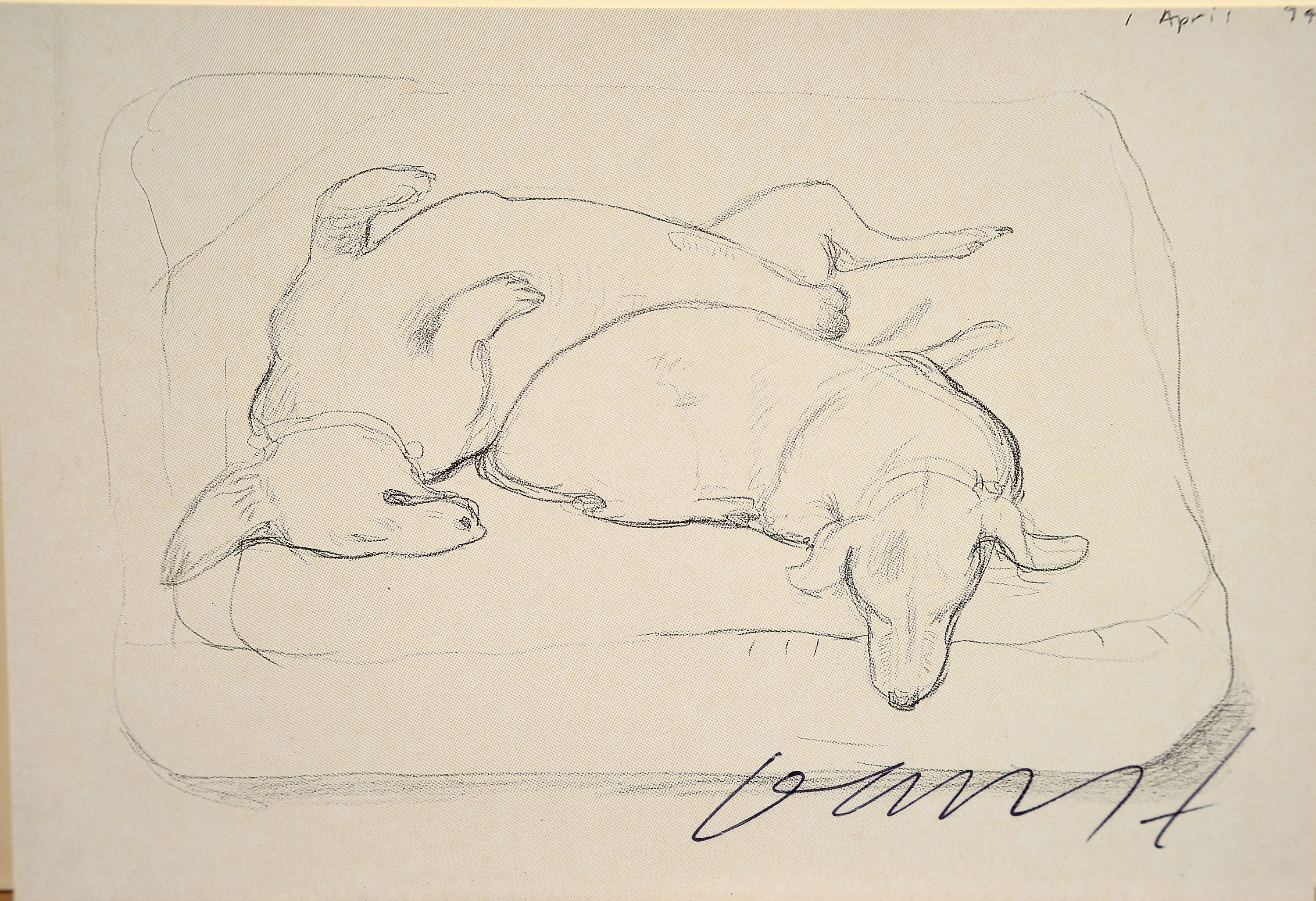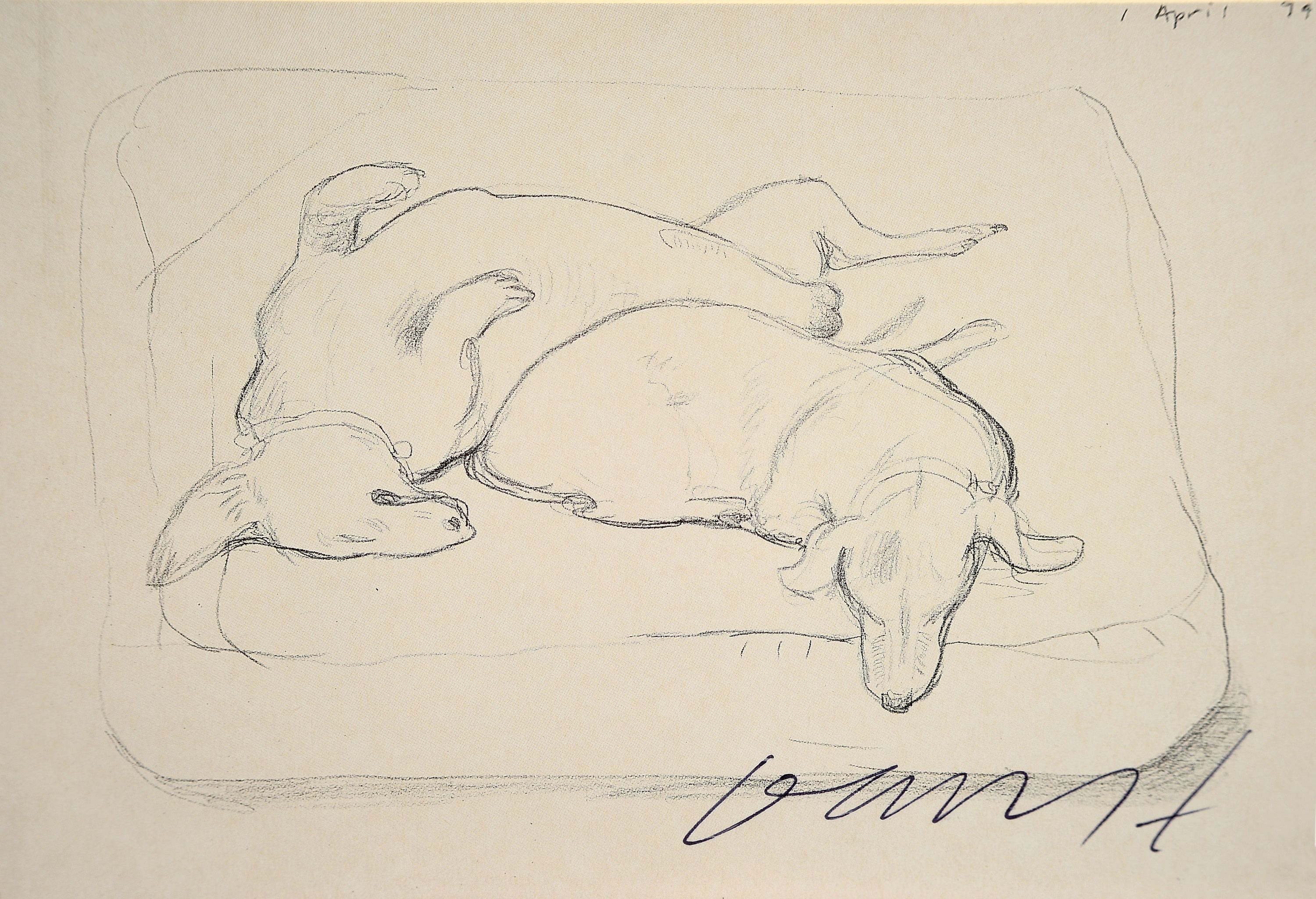 David Hockney, geb.1937, Kunstpostkarte, "Stanley and Boodge", handsign., ca.11x15,5