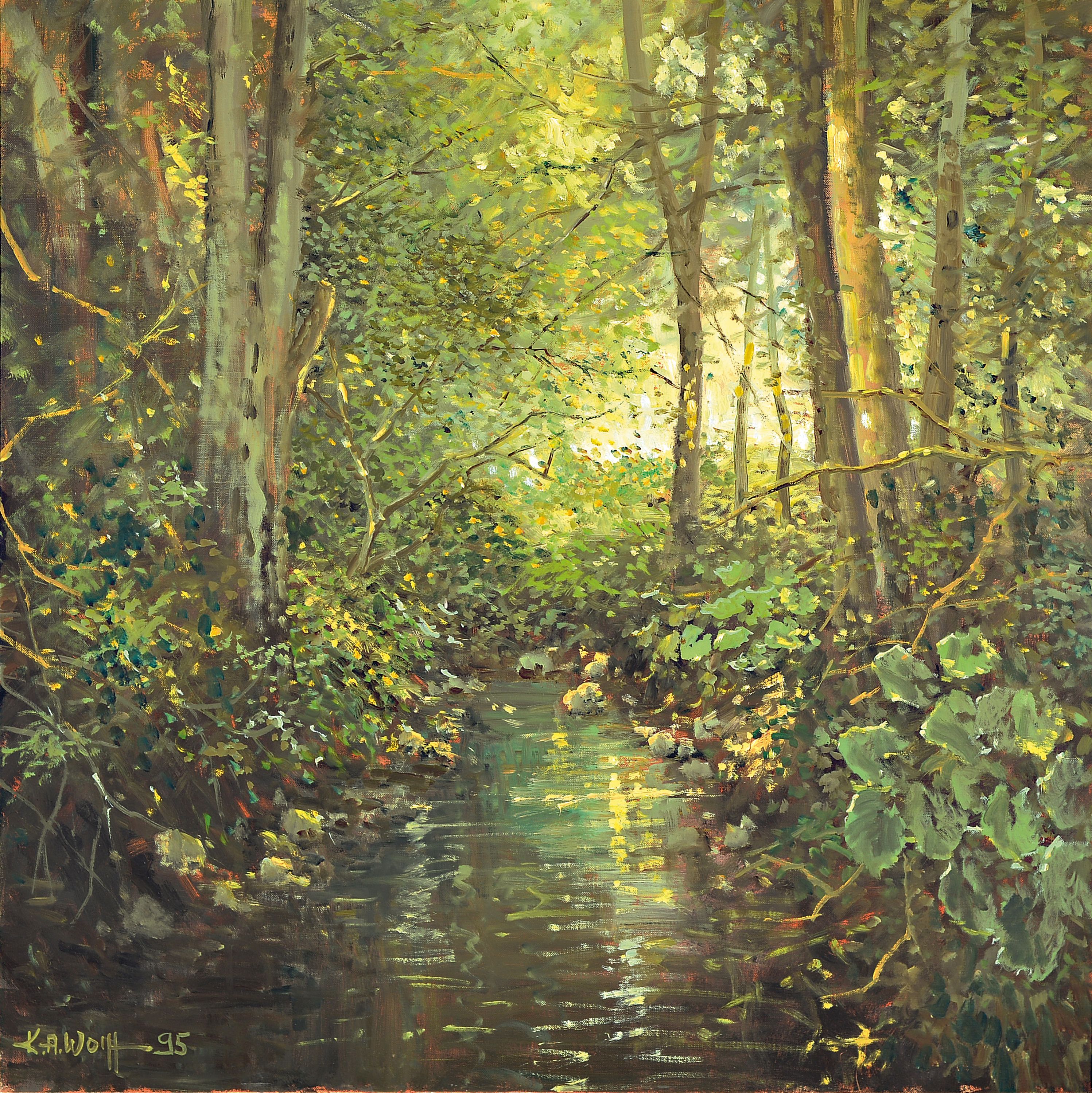 Karl August Wolff, 1938 Ludwigshafen-2023 Mundenheim, Flusslandschaft, Tiefenbach