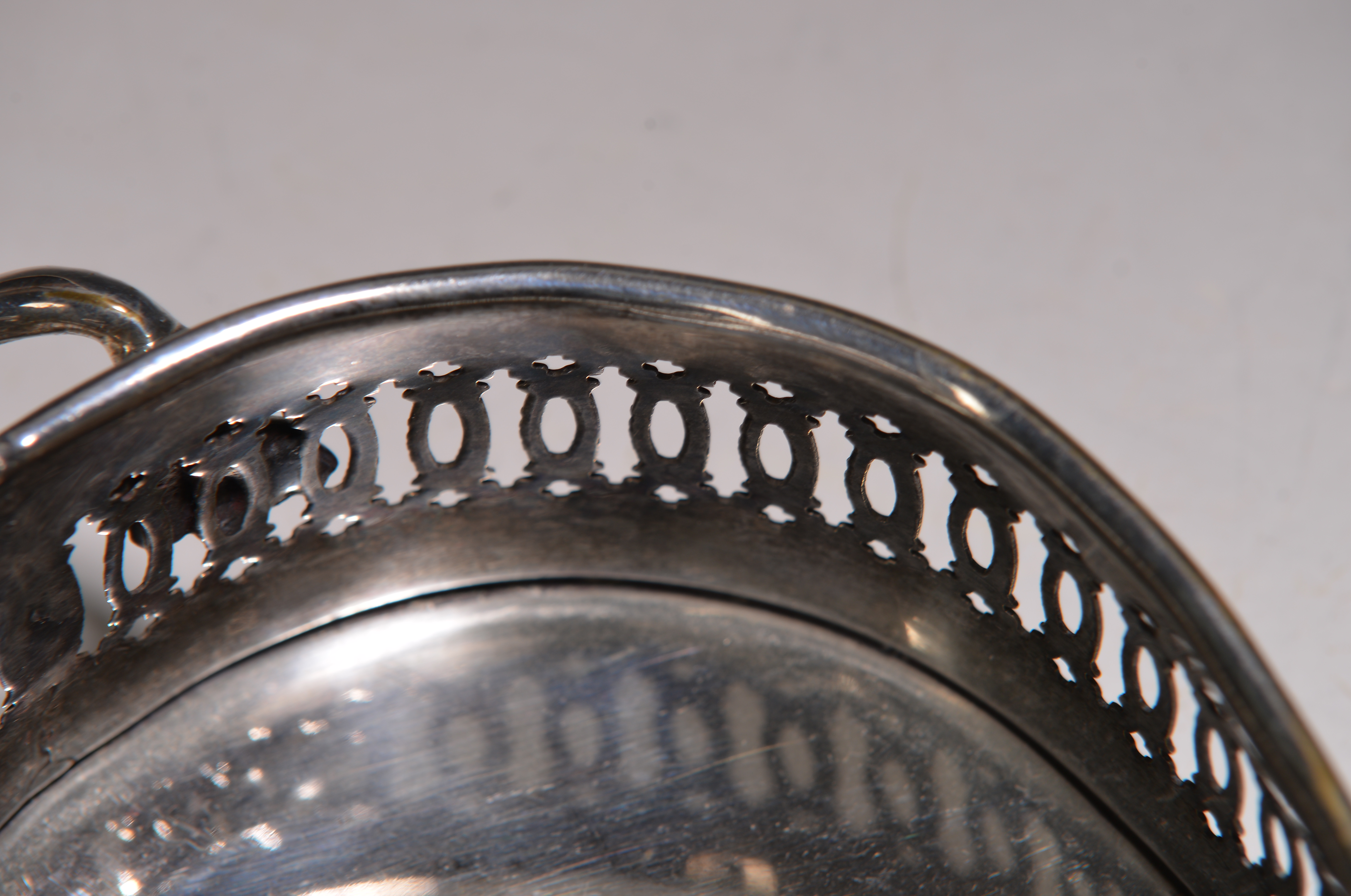 vier Füsse, Wandung in Durchbruch, ca. 6.5 x 32 cm und ein Vorlegelöffel mit Obstrelief