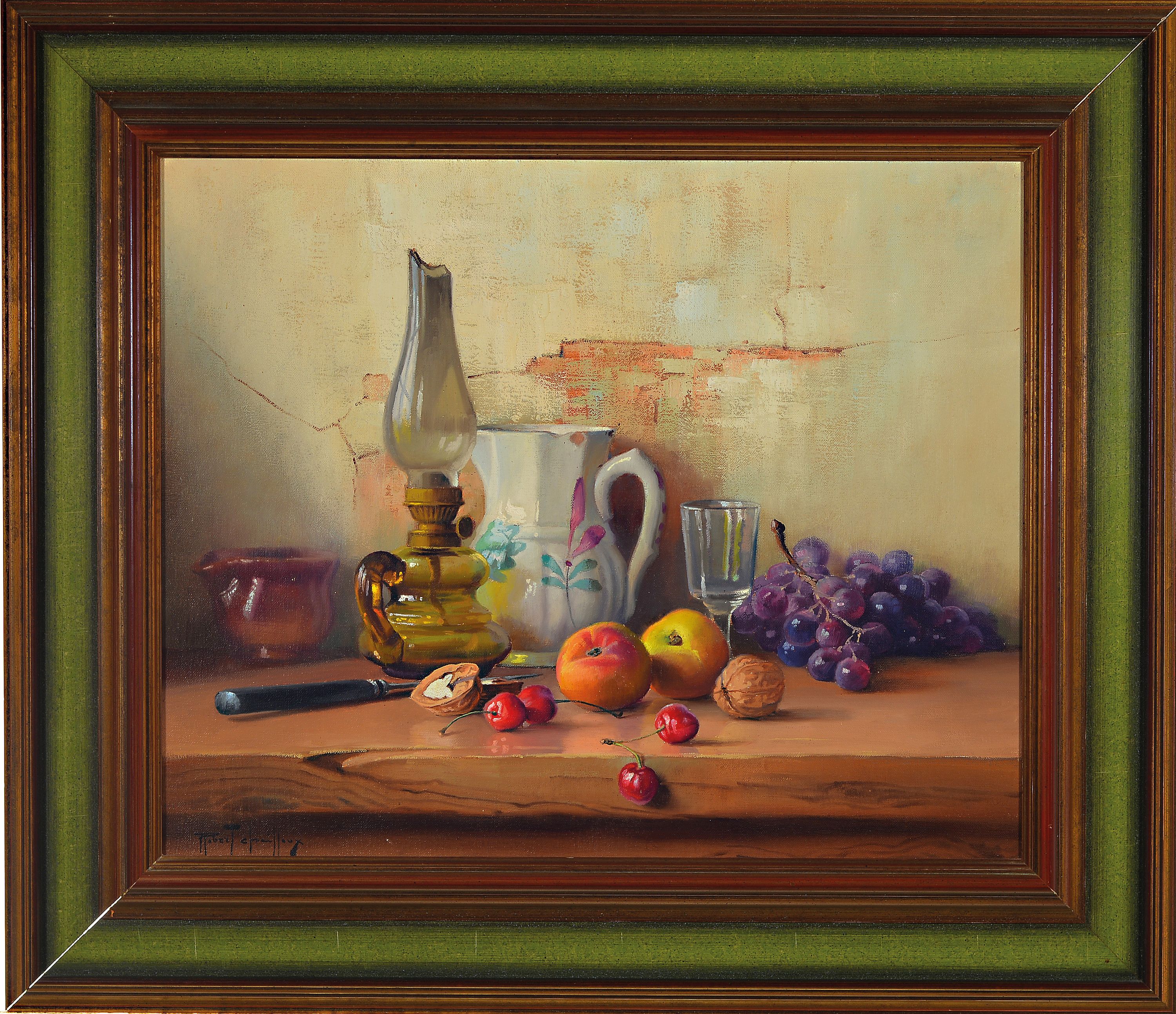 Robert Chailloux, 1913-2006 Paris, Stillleben mit Krug, Petroleumlampe und Obst,