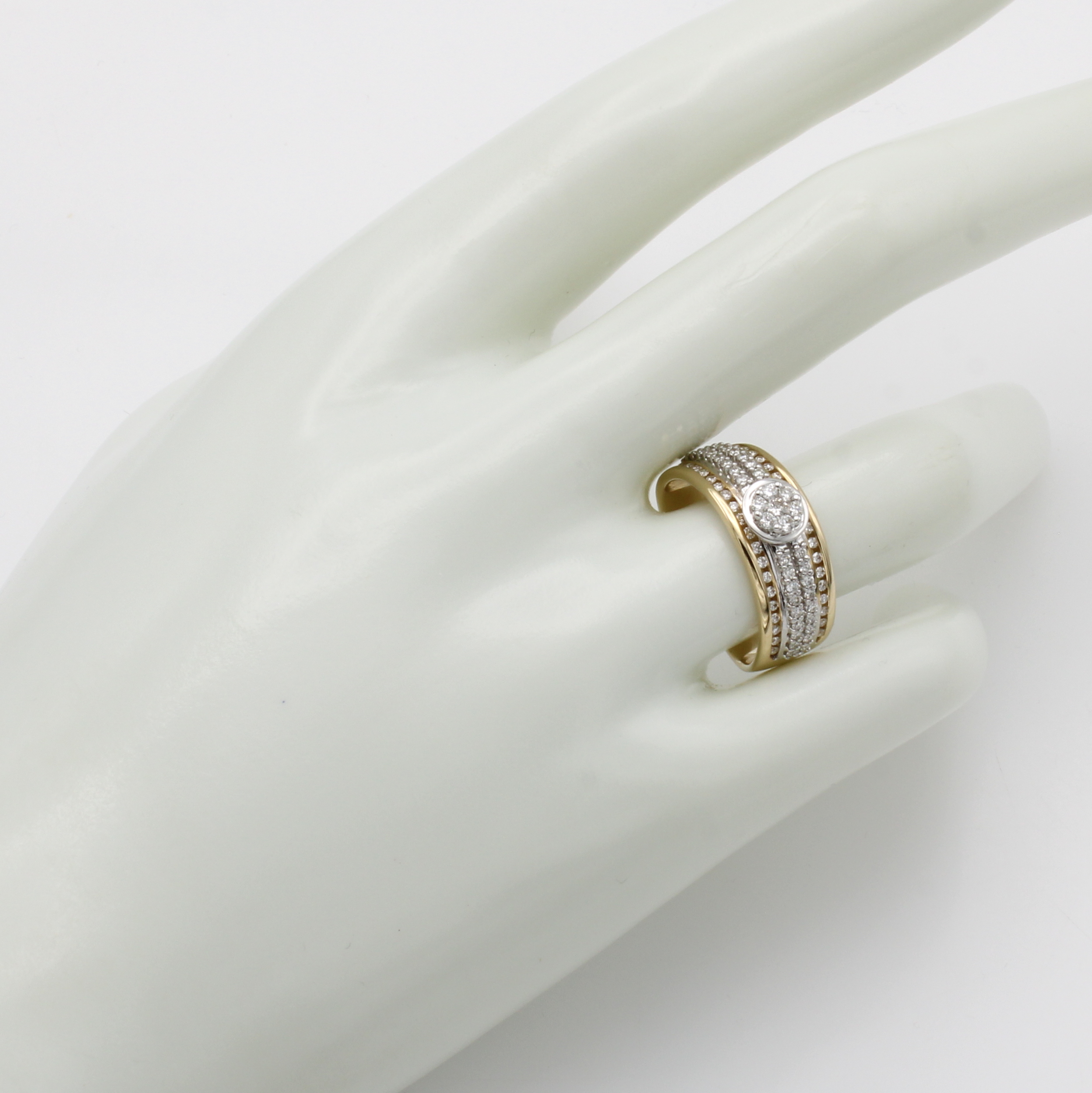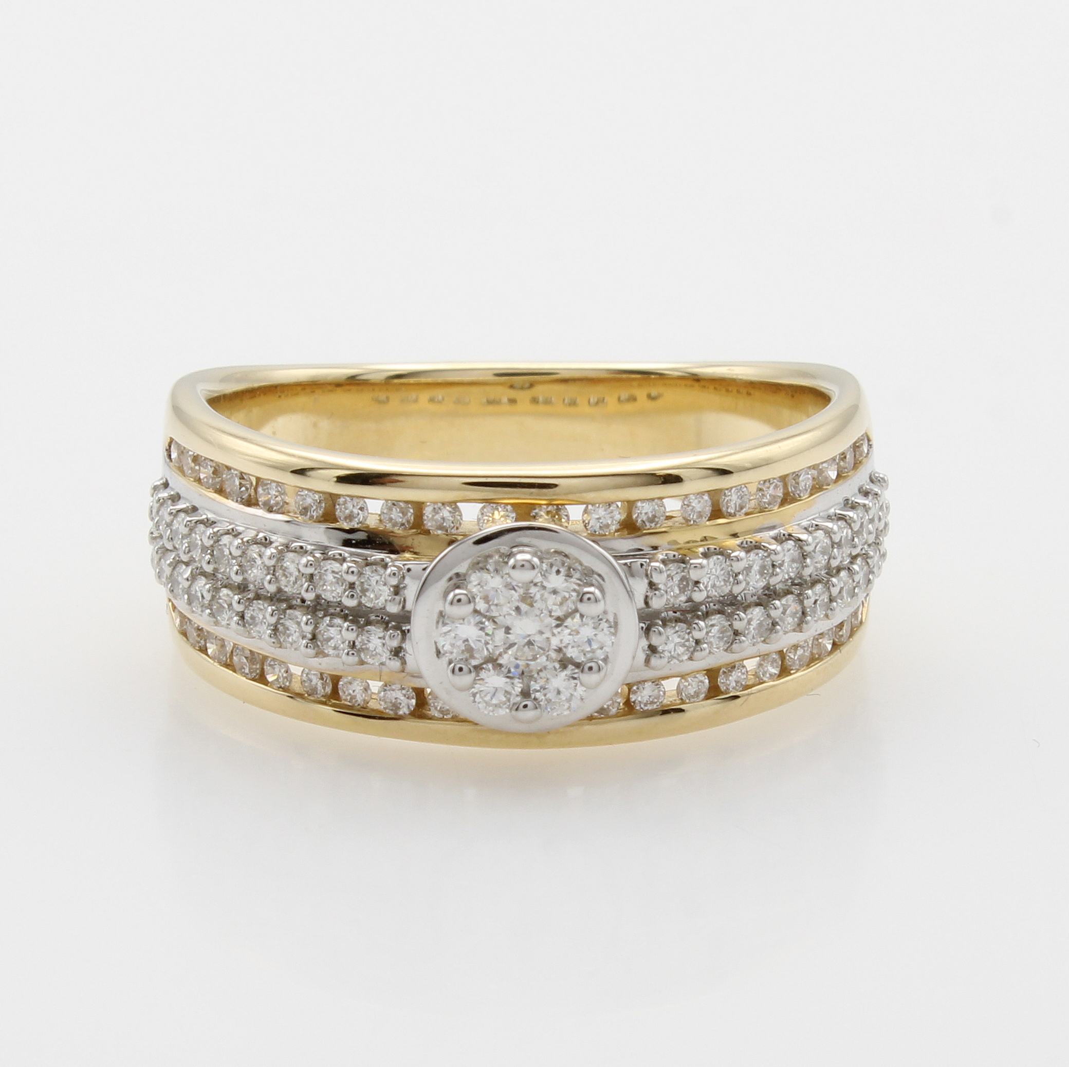 Ring mit Brillanten, GG 585/000, Brill. in rundem Ringkopf u. in Ringschultern gef. zus. ca. 0.60 ct Weiß/lupenr., z.T. in Kanalfassung, RW ca. 56 Schätzpreis: 4410, - EUR