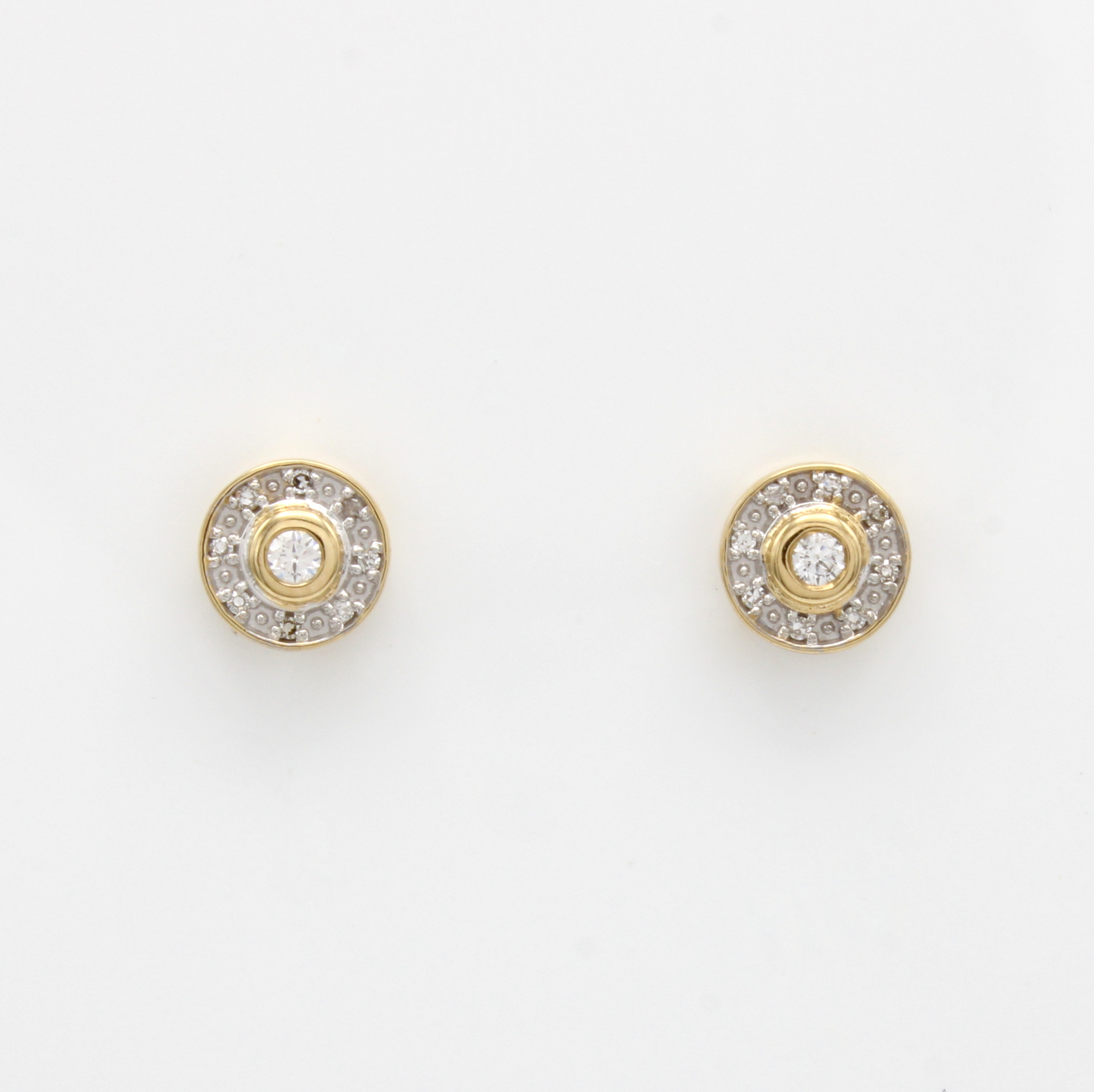 Paar Ohrstecker mit Brillanten und Diamanten, GG 585/000, 2 Brill. zus. ca. 0.07 ct umgeben v. Diam. zus. ca. 0.08 ct Weiß/p Schätzpreis: 1150, - EUR