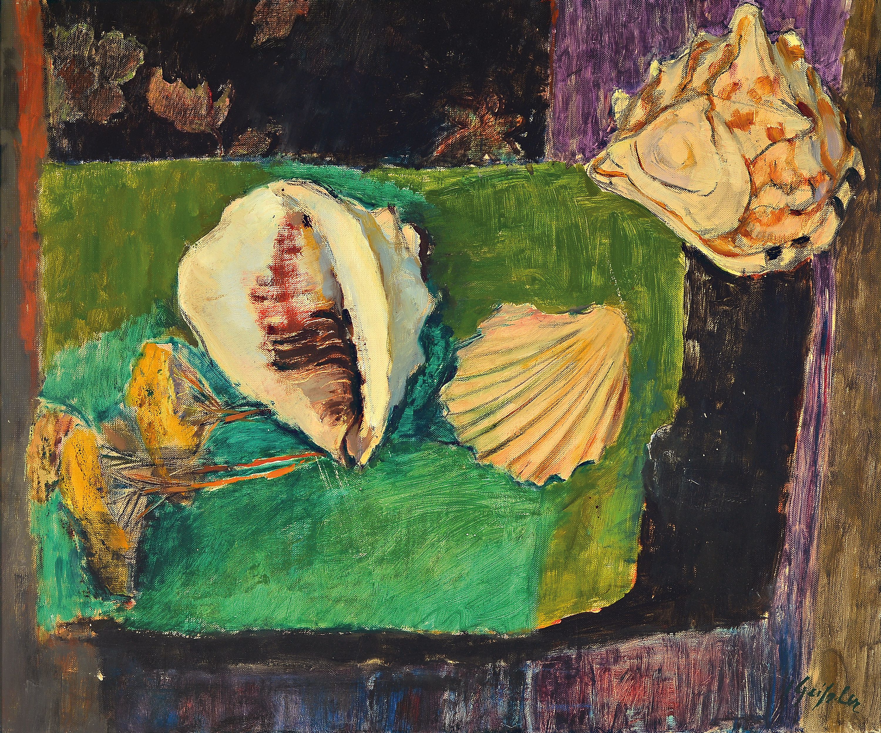 Muscheln, rechts unten signiert, Öl/Lwd, 50x60 cm, Rahmen 62x72 cm