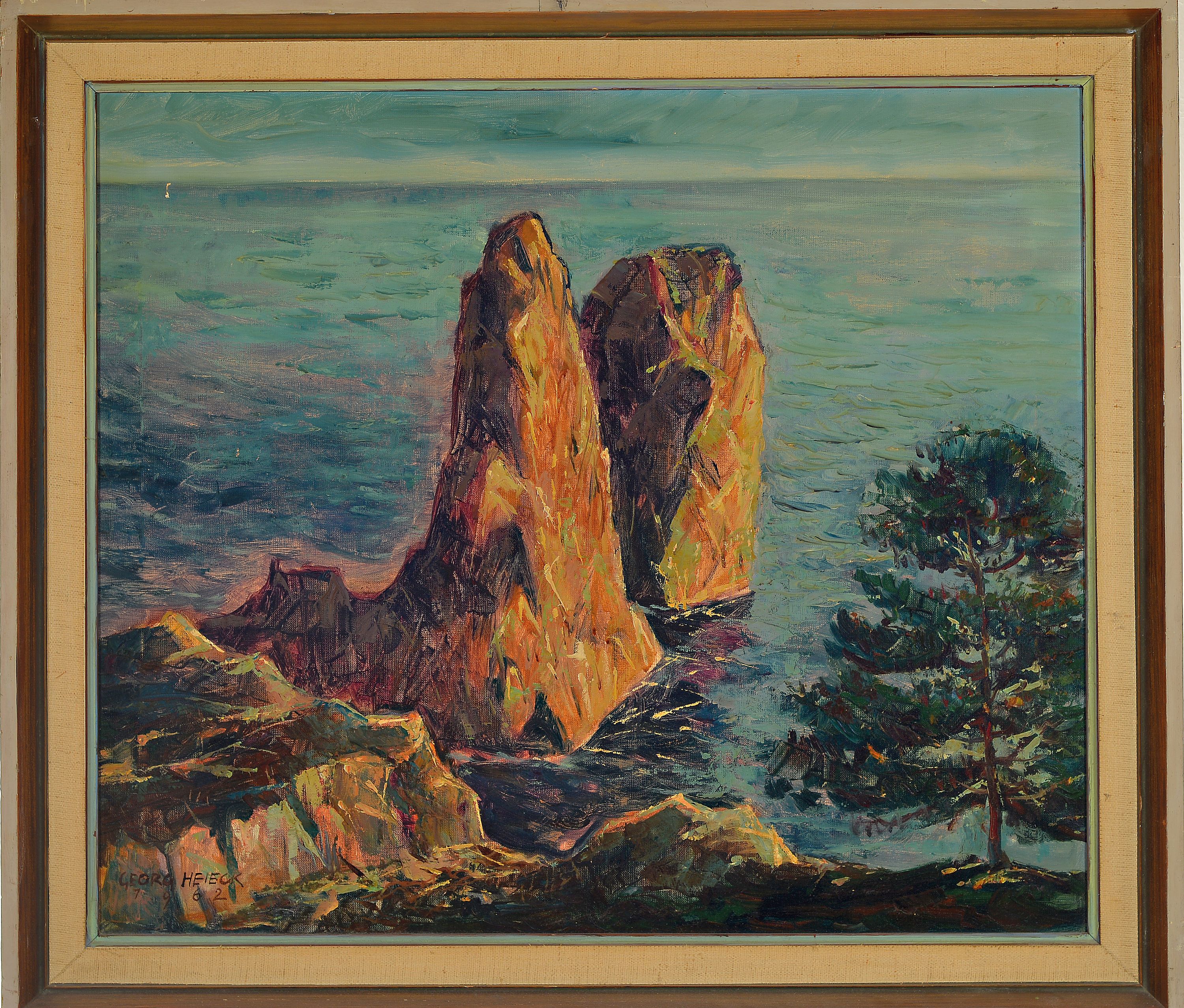 Georg Heieck, 1903 Ludwigshafen-1977 Mannheim , Küstenlandschaft mir Blick auf Felsformation,