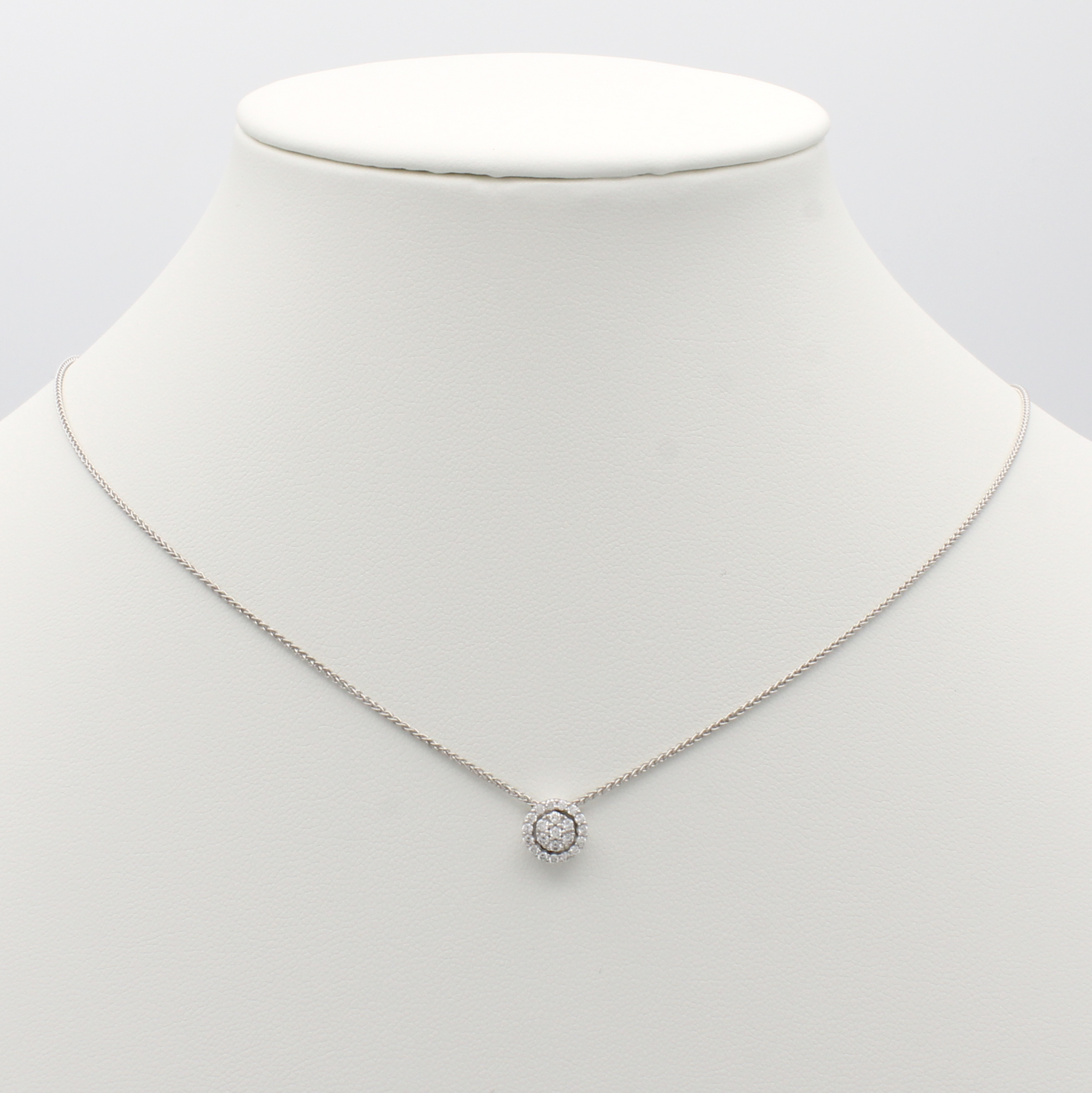 Anhänger mit Brillanten an Kette, WG 585/000, Brill. zus. ca. 0.20 ct Weiß/si, runde, durchbrochene Form, L. ca. 45 cm Schätzpreis: 1660, - EUR
