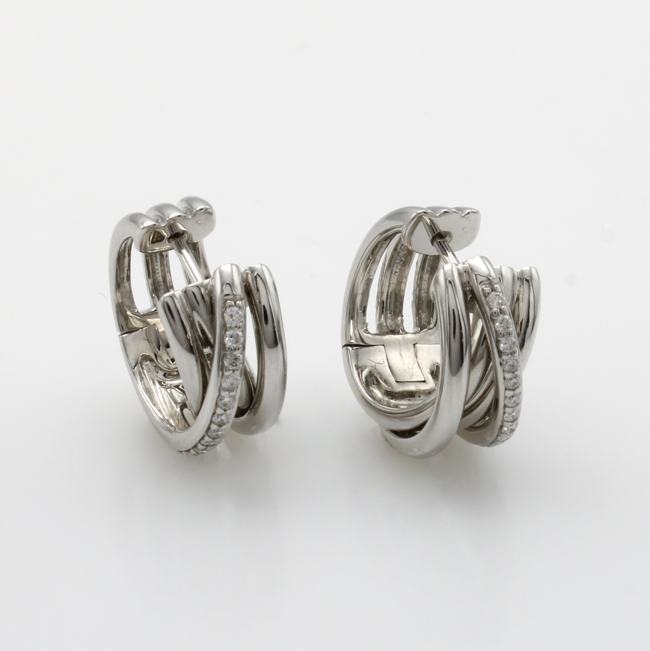 Paar Creolen mit Brillanten, WG 750/000, 22 Brill. zus. ca. 0.19 ct Weiß/si jeweils in 1 Reihe gef. Schätzpreis: 5170, - EUR