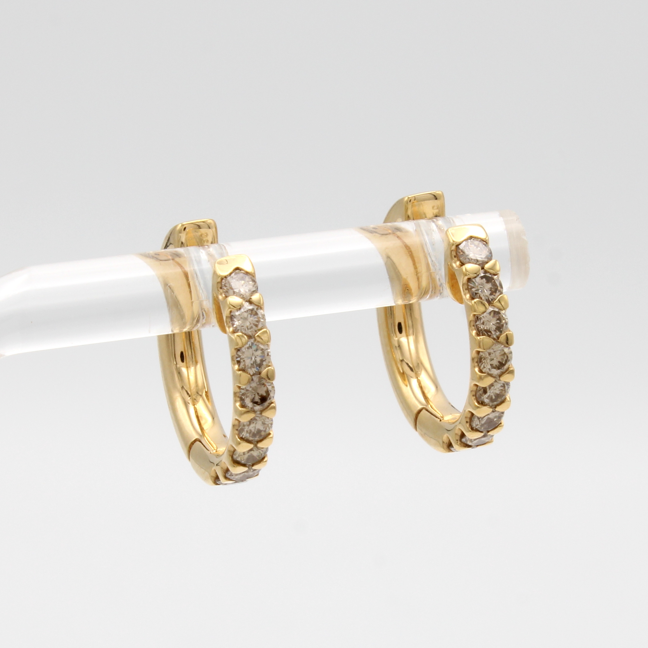Paar Creolen mit Brillanten, RG 750/000, 16 Brill. zus. ca. 0.64 ct Braun, D. ca. 1.7 cm Schätzpreis: 3850, - EUR