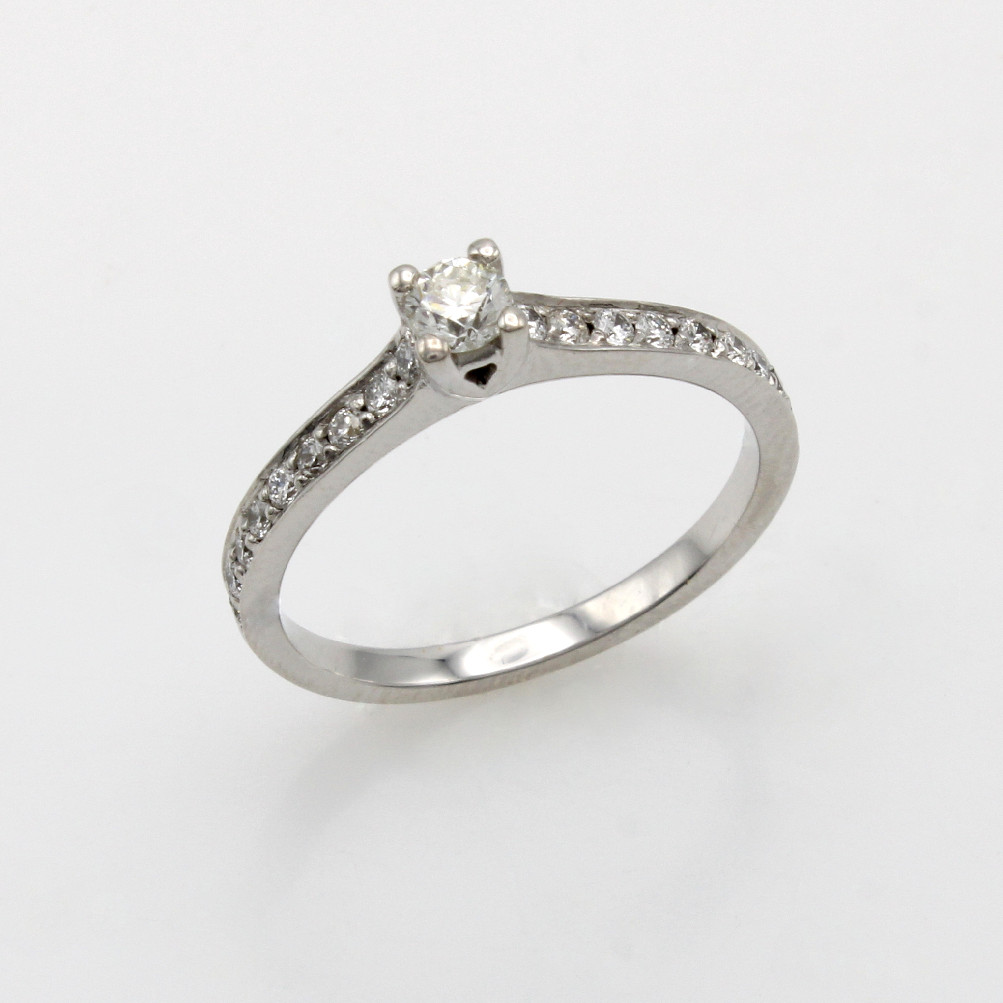 Ring mit Brillanten, WG 585/000, Mittelsteinu. 18 Besatzbrill. zus. ca. 0.42 ct Weiß/si, RW ca. 54 Schätzpreis: 2460, - EUR