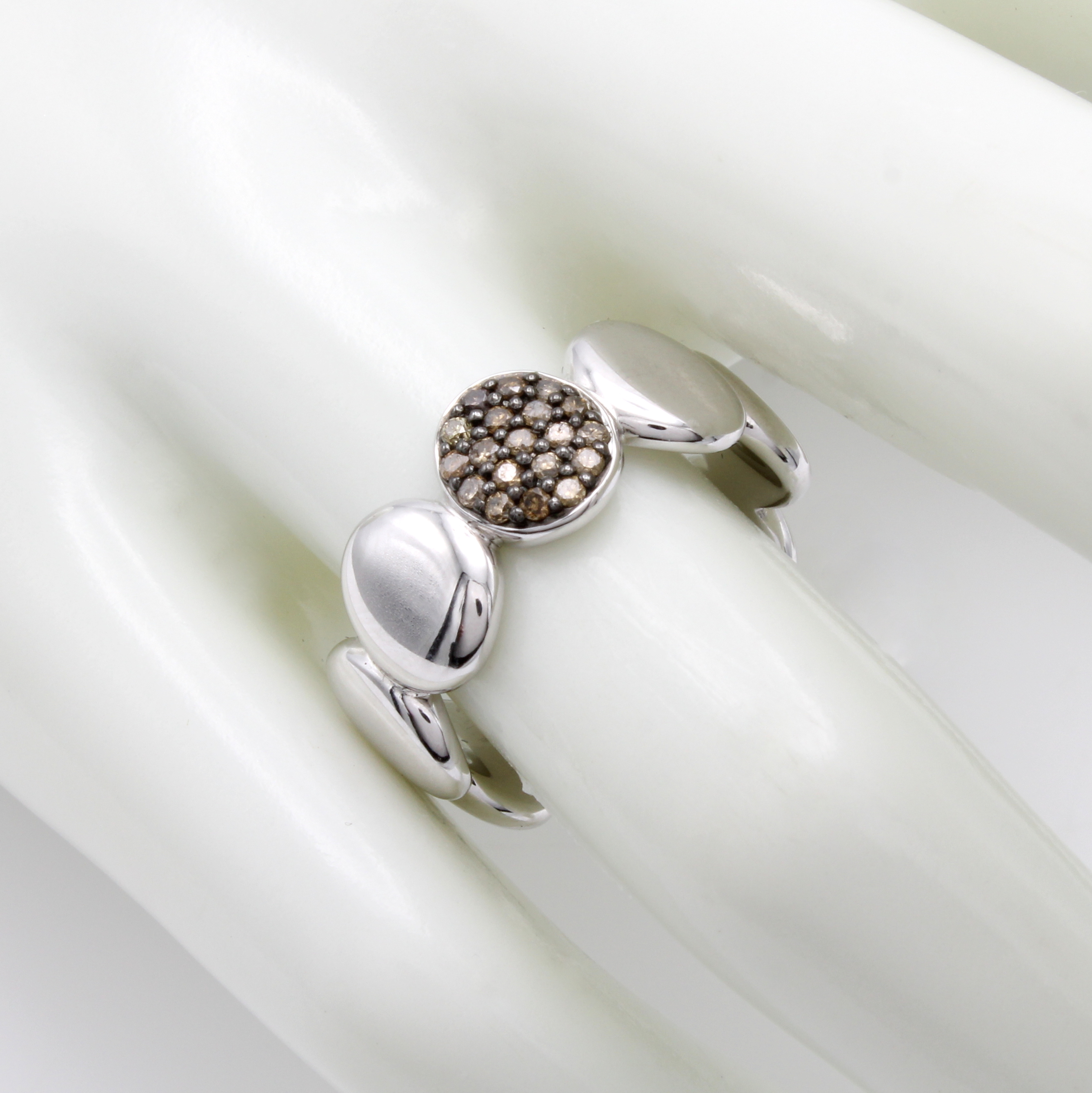 Ring mit Diamanten, WG 750/000, 82 Diam. zus. ca. 0.94 ct Braun/si, z.T. schwarz rutheniert, RW ca. 54 Schätzpreis: 5150, - EUR