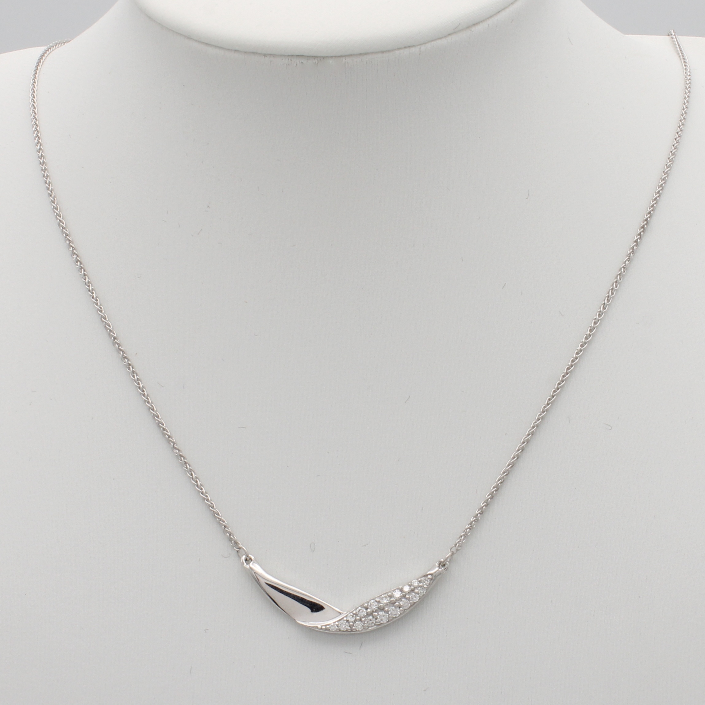 Collier mit Brillanten, WG 585/000, gebogenes Mittelteil zur Hälfte bes. m. Brill. zus. ca. 0.15 ct Weiß/si, L. ca. 46 cm Schätzpreis: 1980, - EUR
