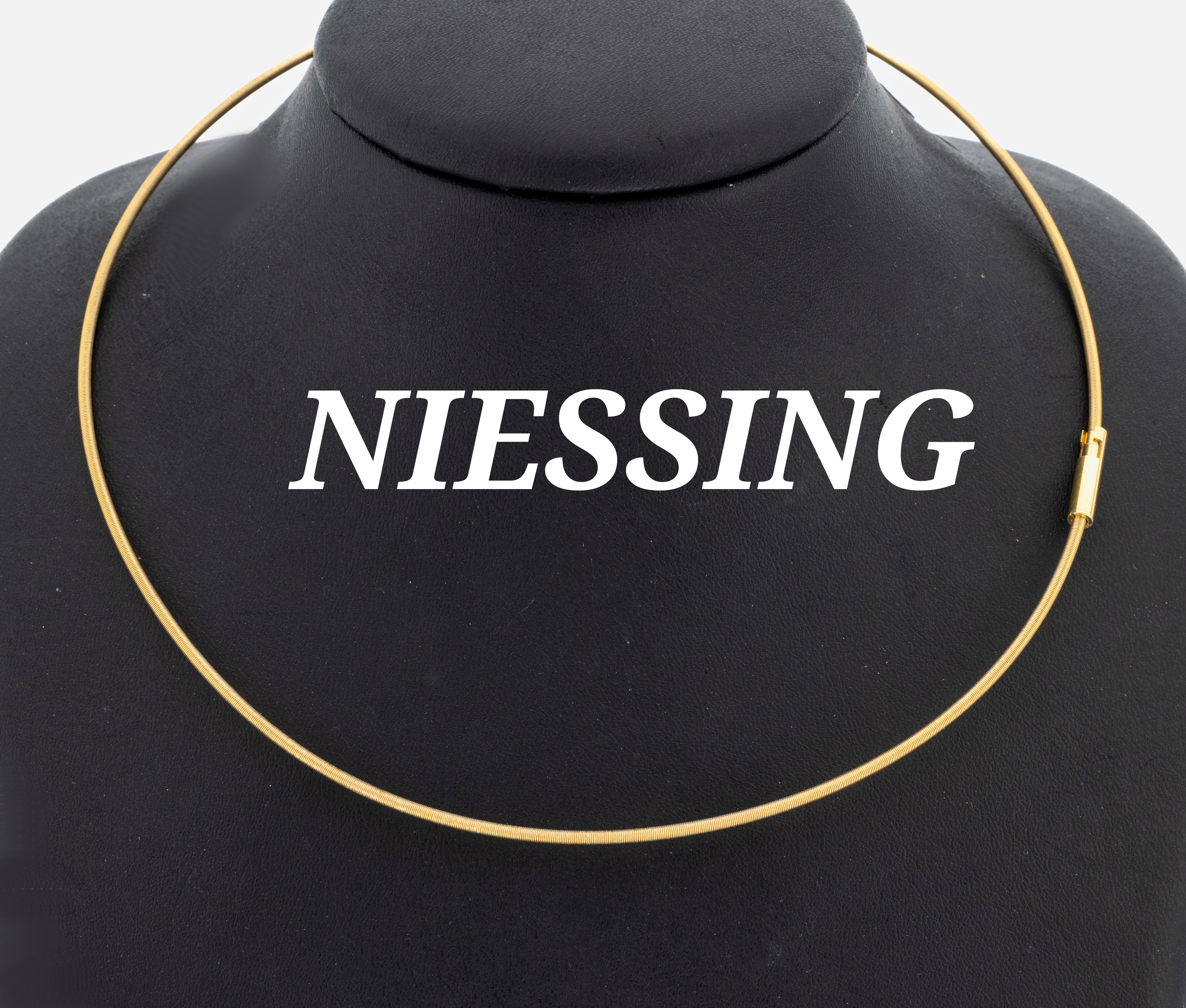 18 kt Gold NIESSING Halsreif, GG 750/000, L. ca. 41 cm, D. ca. 1.7 mm, Steckschließe,