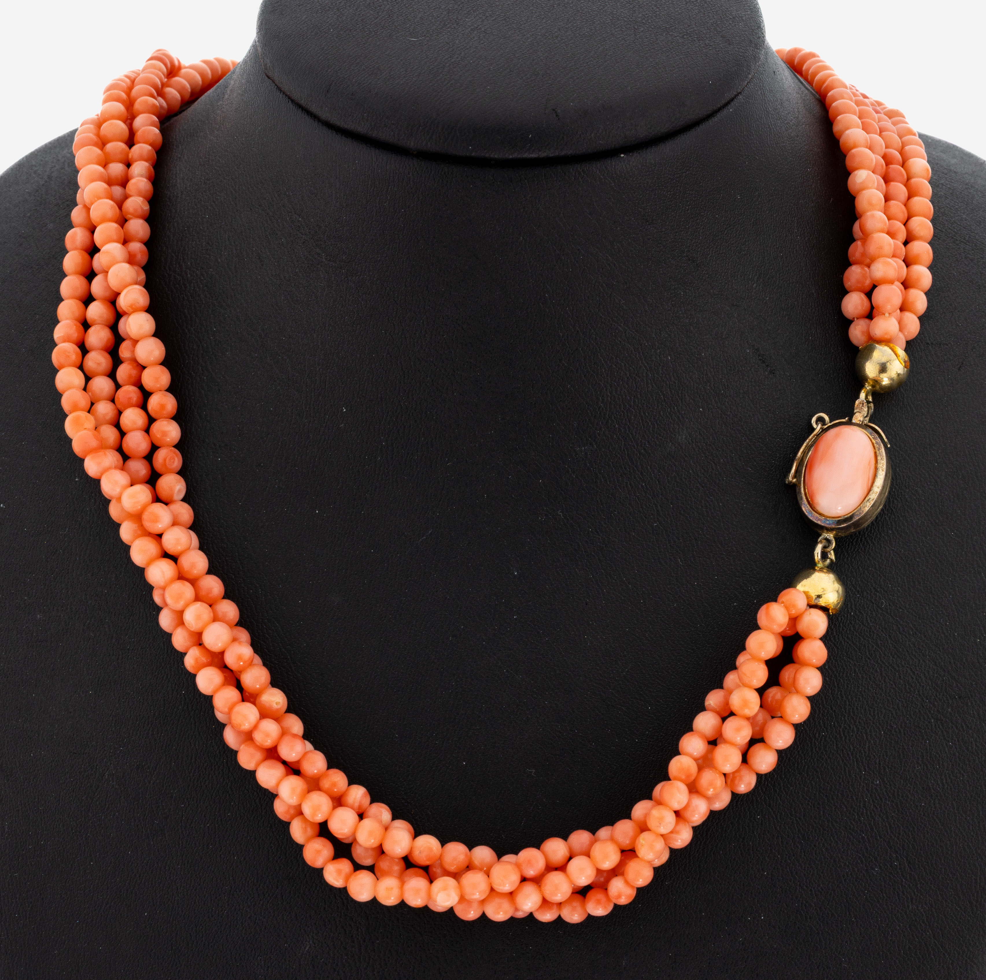 Korallen-Collier, 4-rhg. Korallenkugeln, D.ca. 4-4.2 mm, ovales Kastenschloss, 925er