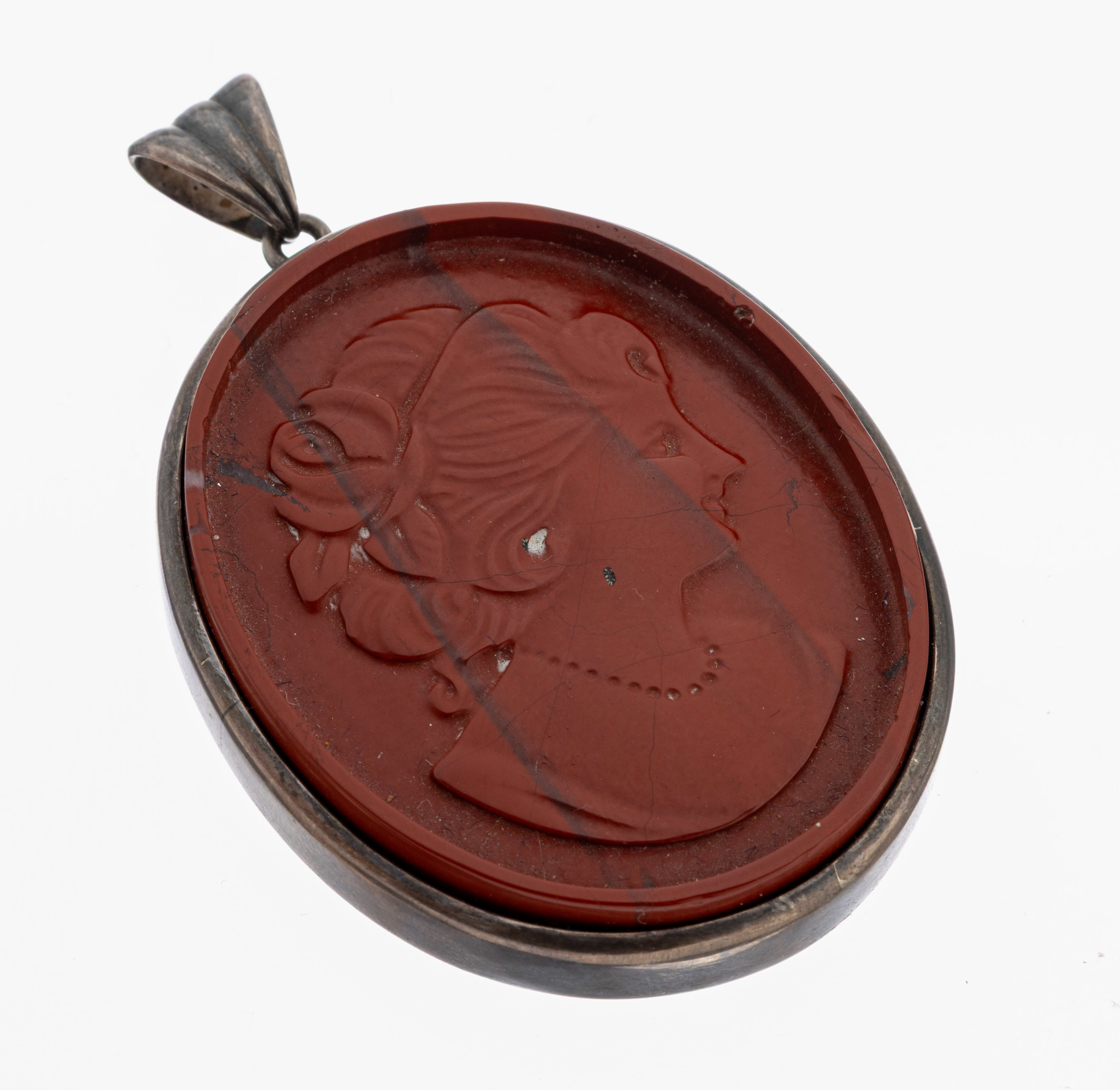 Jaspis-Anhänger, 925er Silber, ovale Jaspisgravur, Idar-Oberstein um 1910, Darstellung