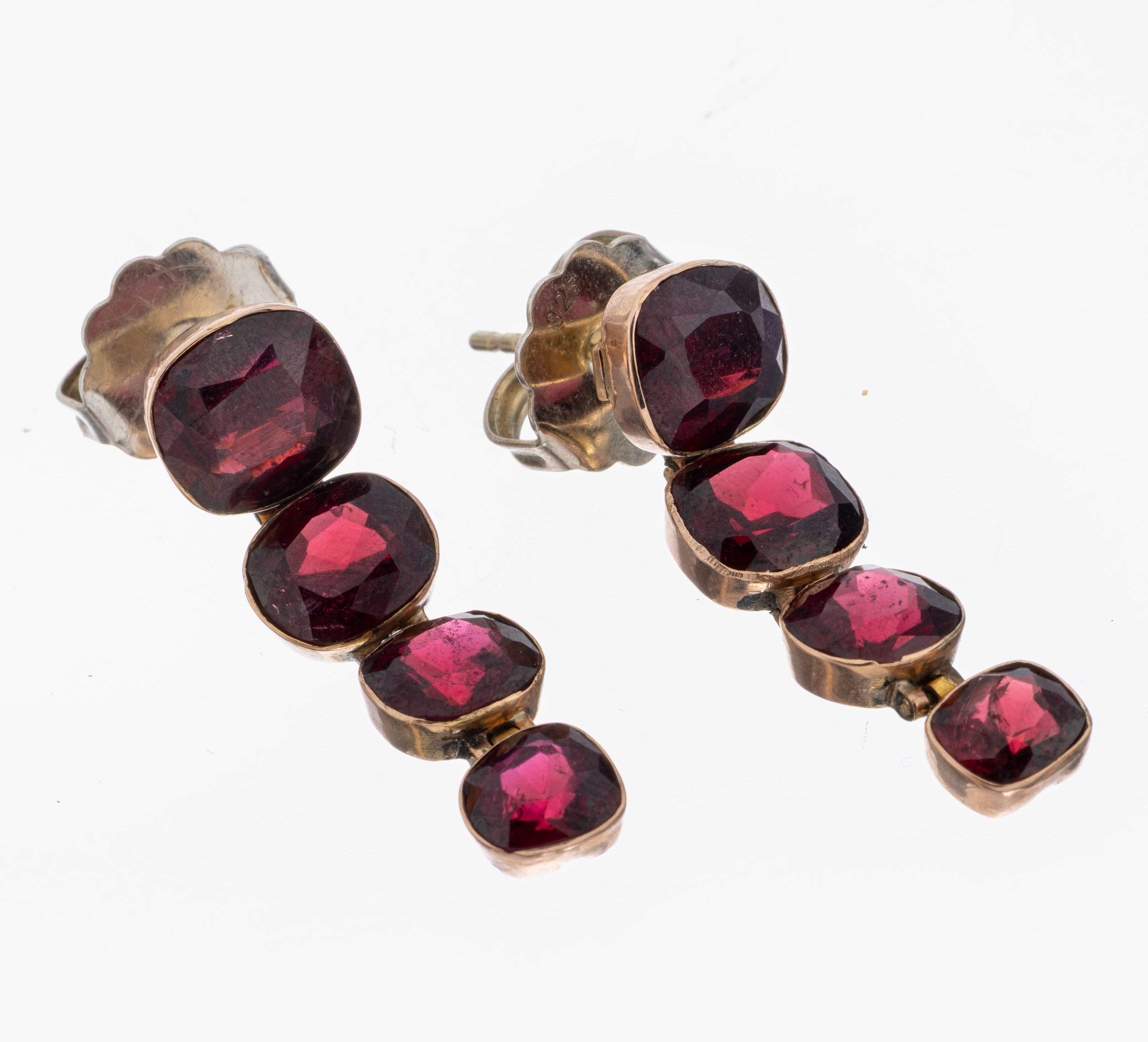Paar 8 kt Gold Granat-Ohrstecker, GG 333/000 gepr., länglich bewegl., im Verlauf