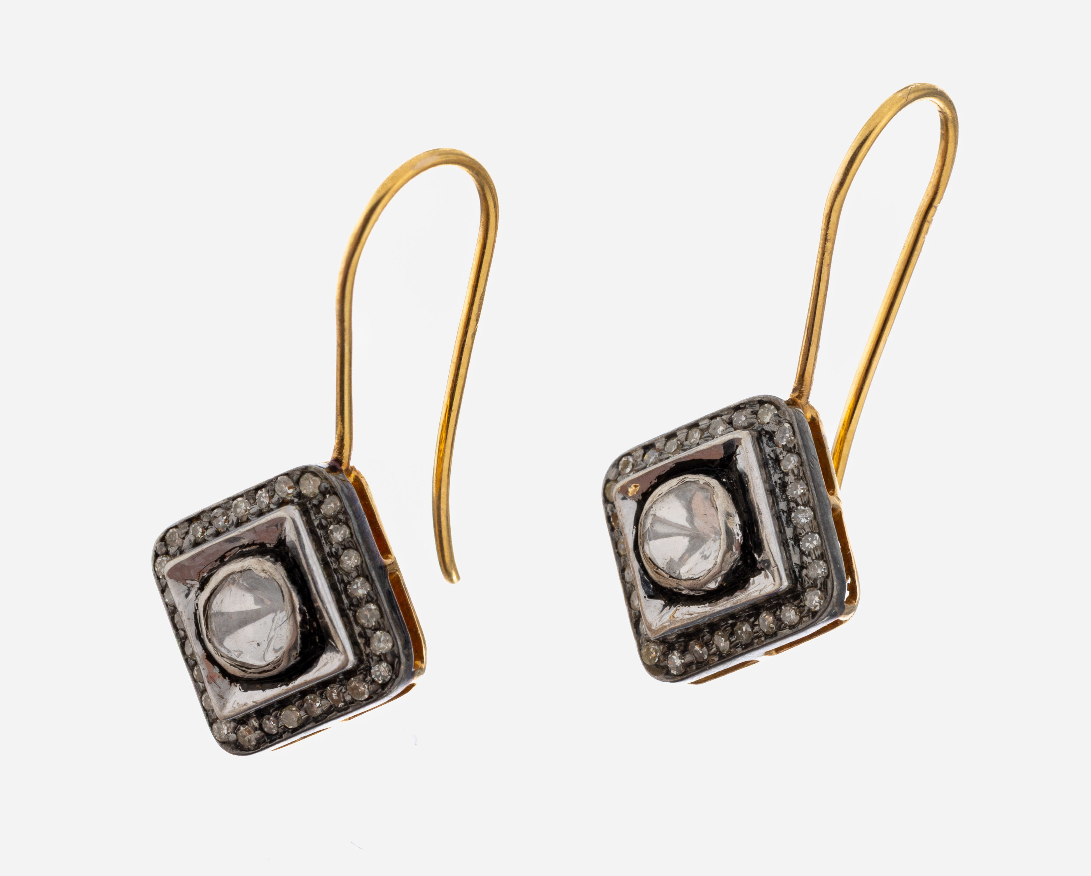 Paar Diamant-Ohrhänger, 925er Silber teilverg., quadratische Elemente, rs. durchbrochen