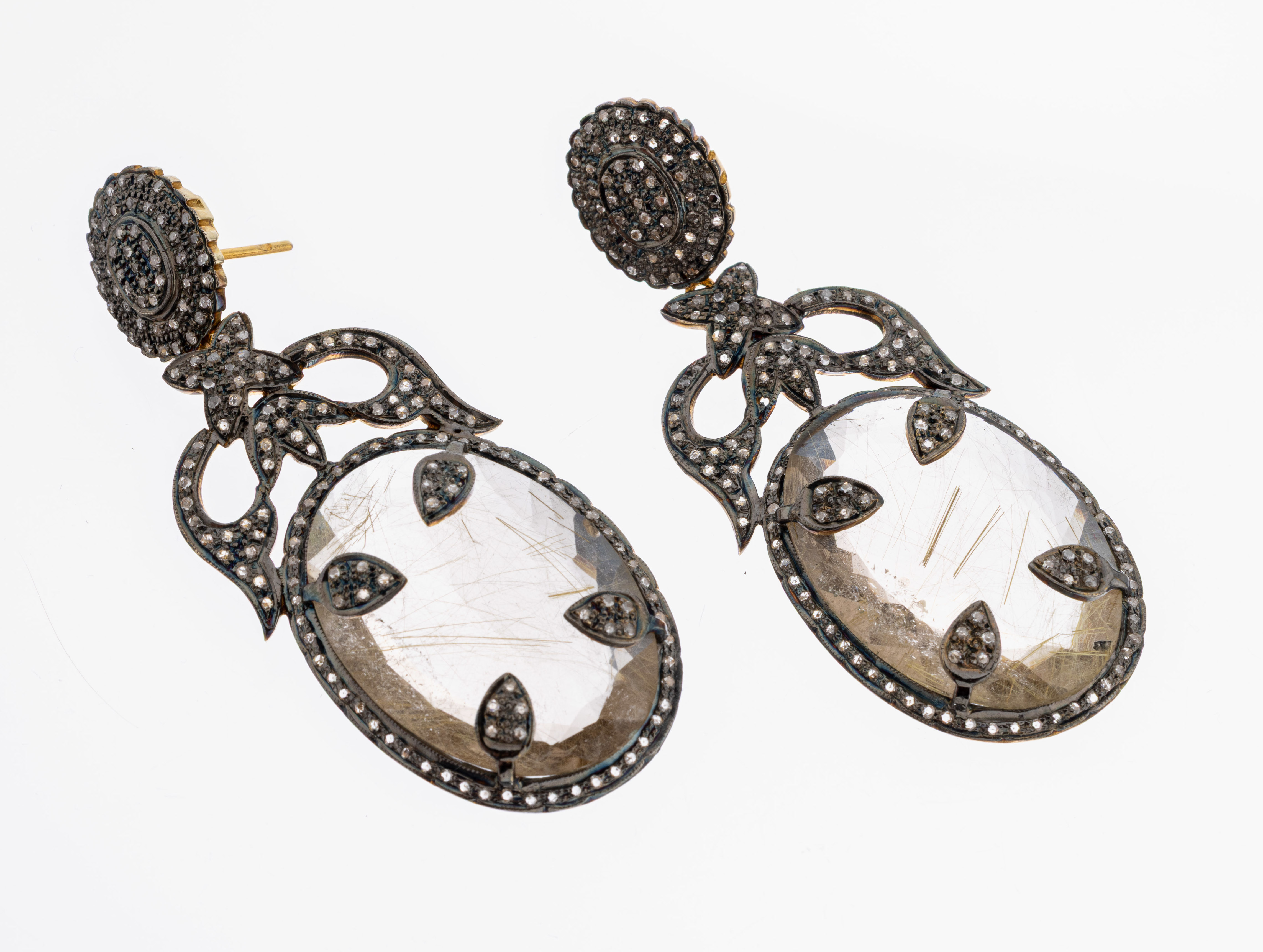 floral elements, 2 oval bevelled rutil quartzes total approx. 56.56 ct, 364 diamond