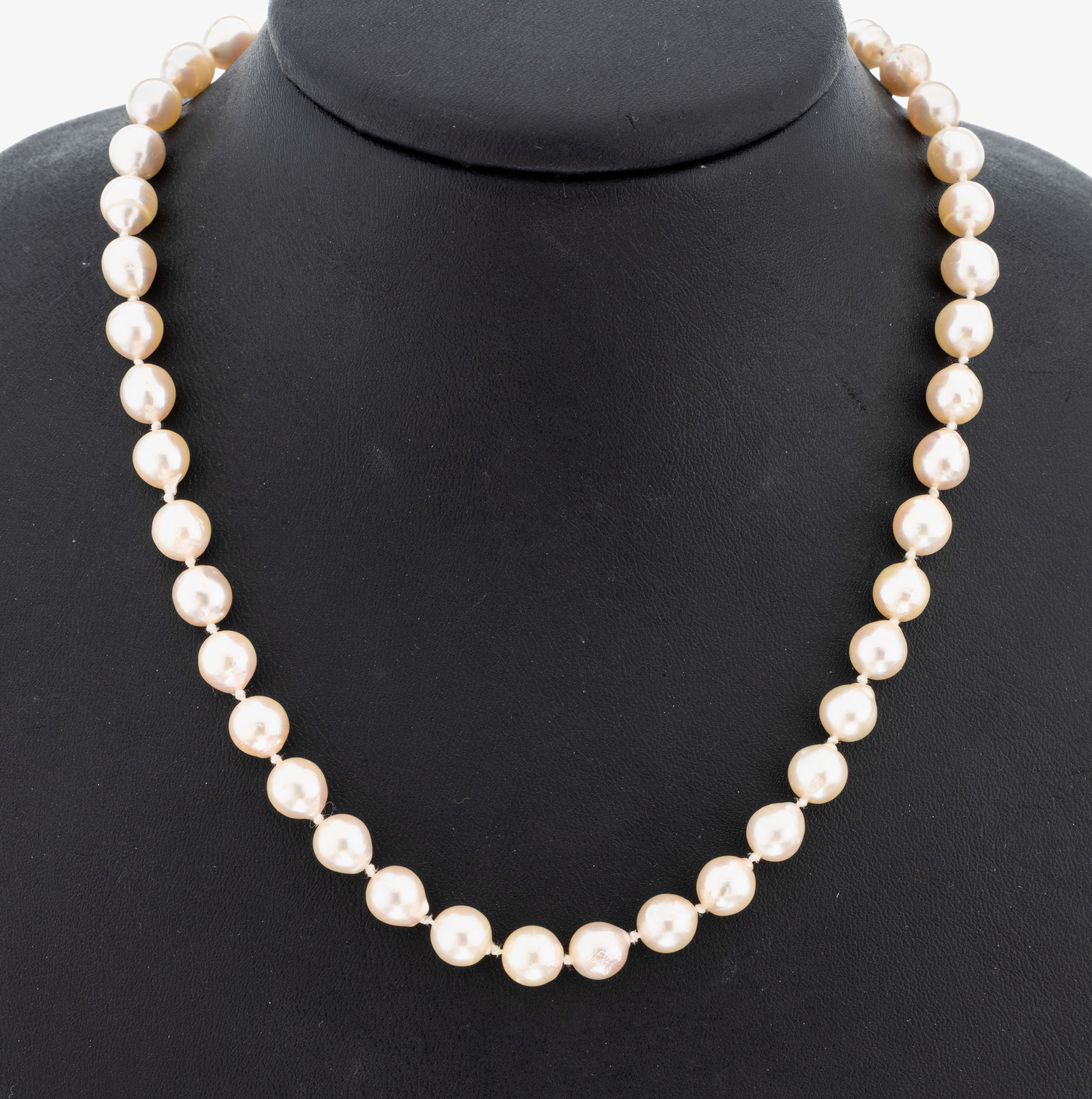 Perl-Collier, endlos, 97 barocke Zuchtperlen, D. ca. 7 mm, L. ca. 90 cm