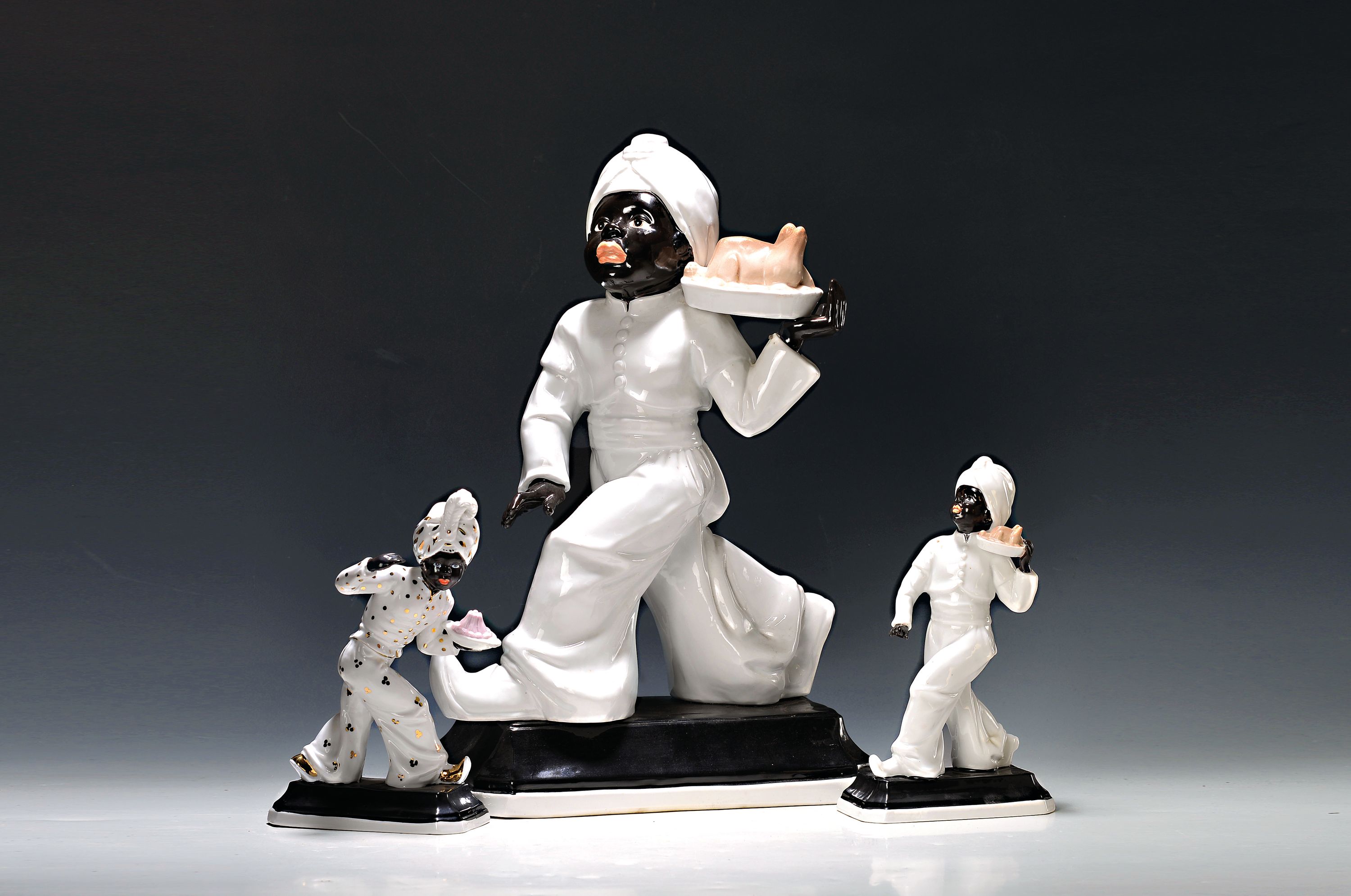 3 porcelain figures "Sarottimohr", Neundorf, Thuringia, 20th century, porcelain,