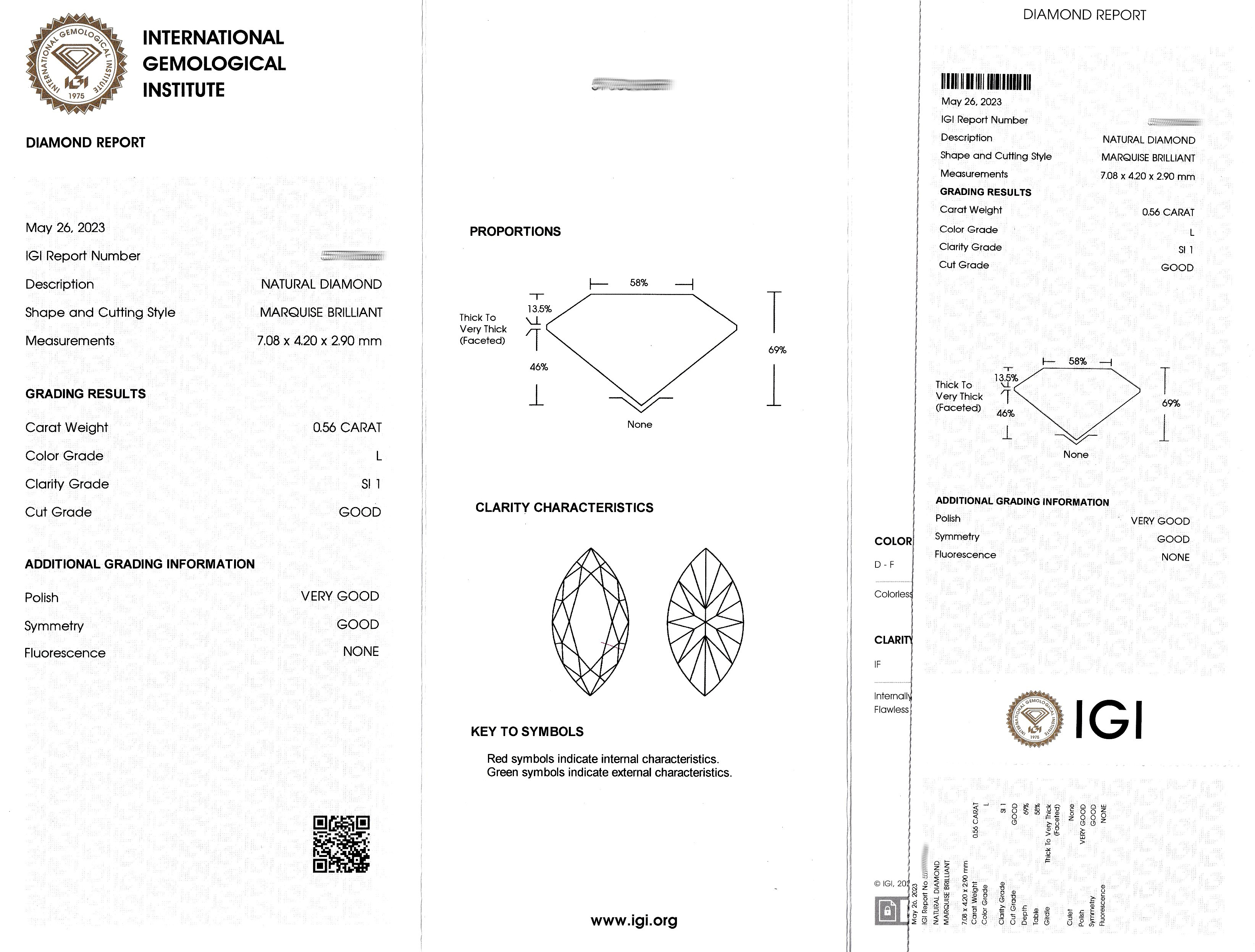 Lose Diamant Navette ca. 0.56 ct get.Weiß (L)/si1, eingeschweißt, IGI-Report