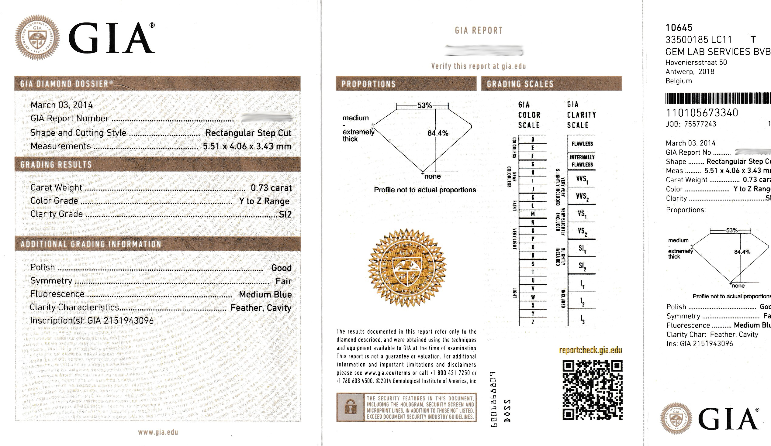 Loser Diamant, Emerald Cut ca. 0.73 ct Getönt(yellow Y-Z))si 2, GIA-Report