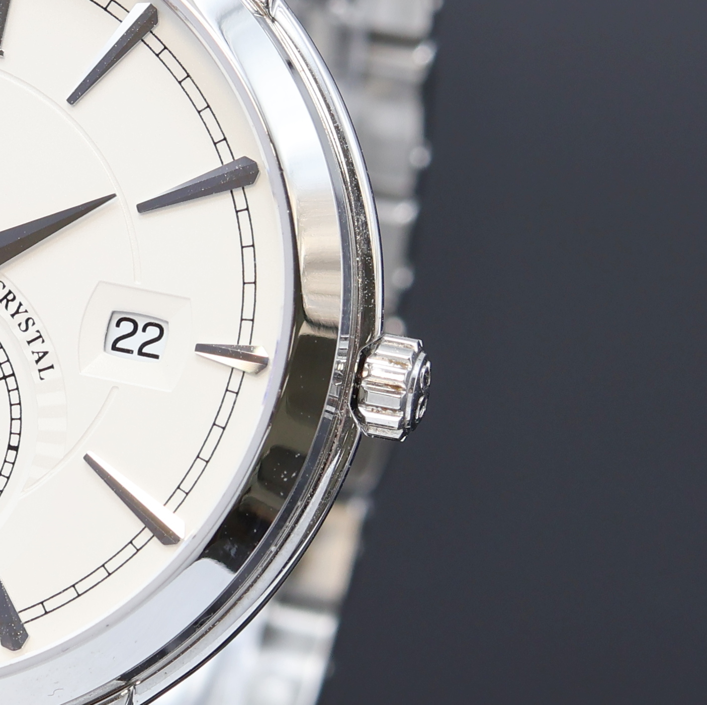 inkl. orig. Gliederband m. dopp. Faltschl., Boden 4-fach verschr., Saphirglas, silb.