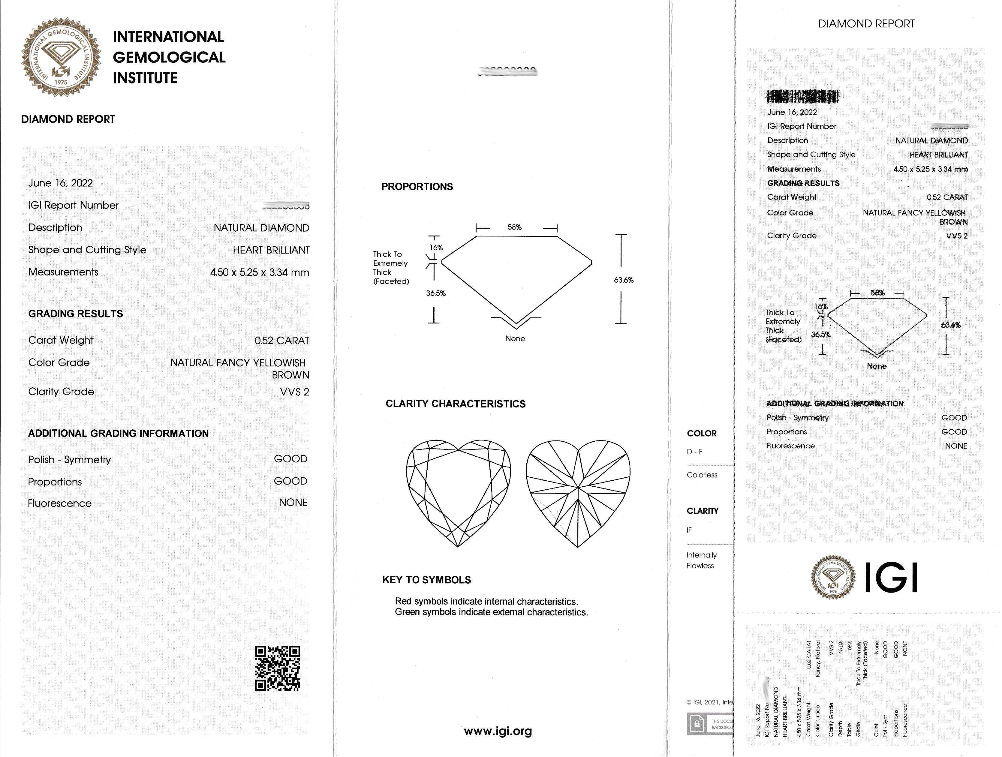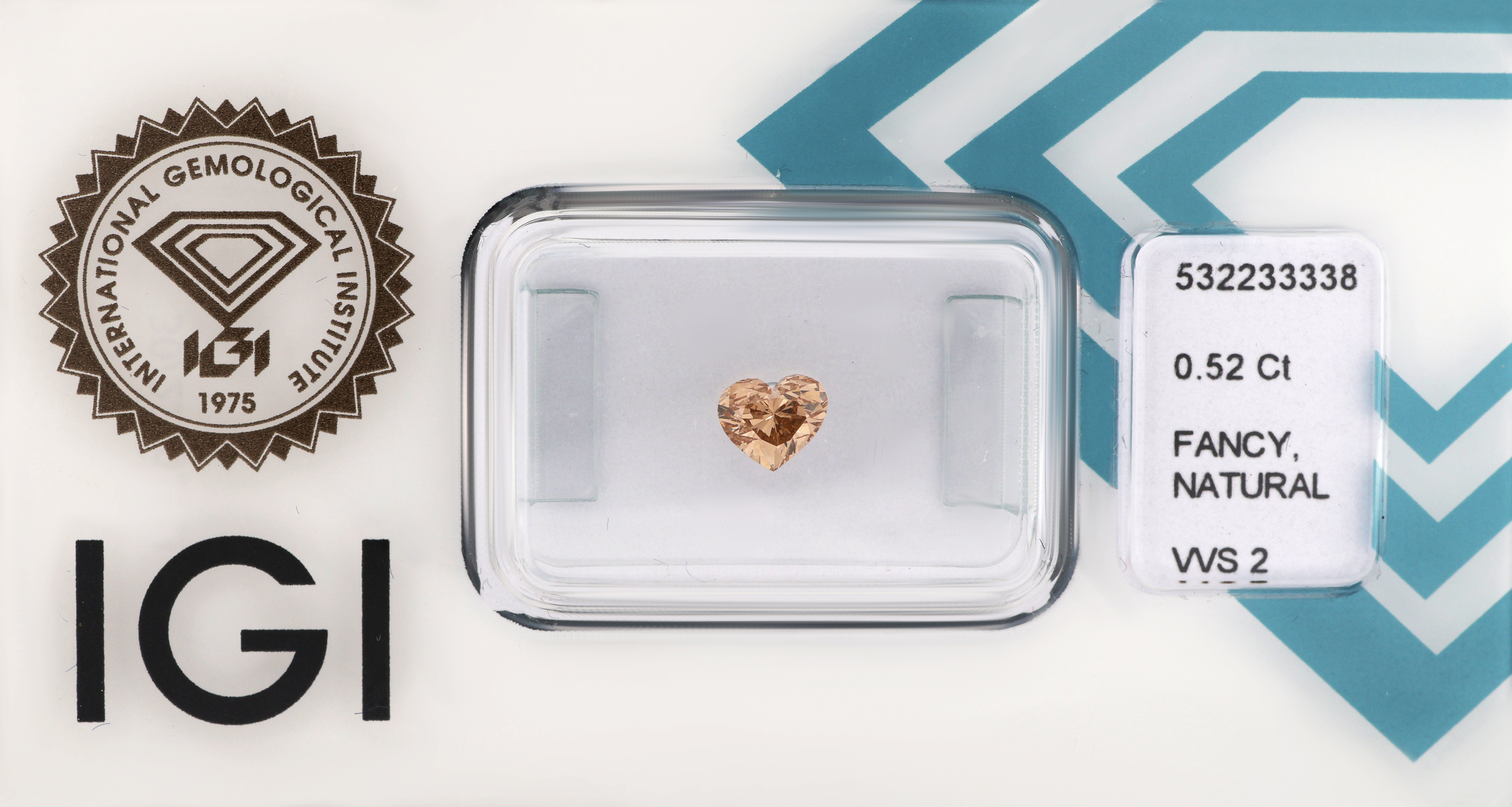 Loser Diamant, 0.52 ct Natural Fancy YellowishBrown, facett. Herz, ca. 4.50 x 5.25 x 3.34 mm, eingeschweißt, IGI-Report