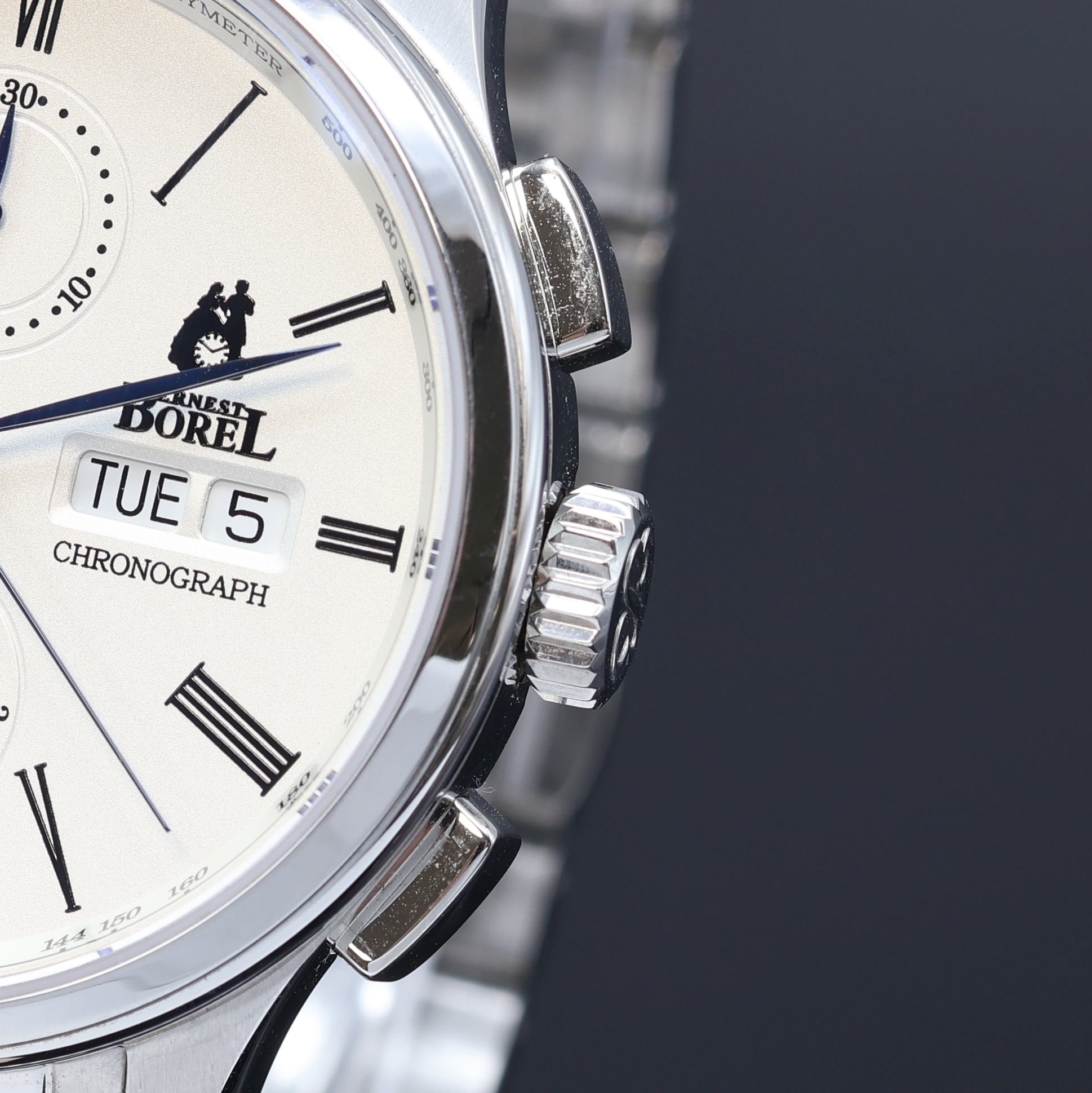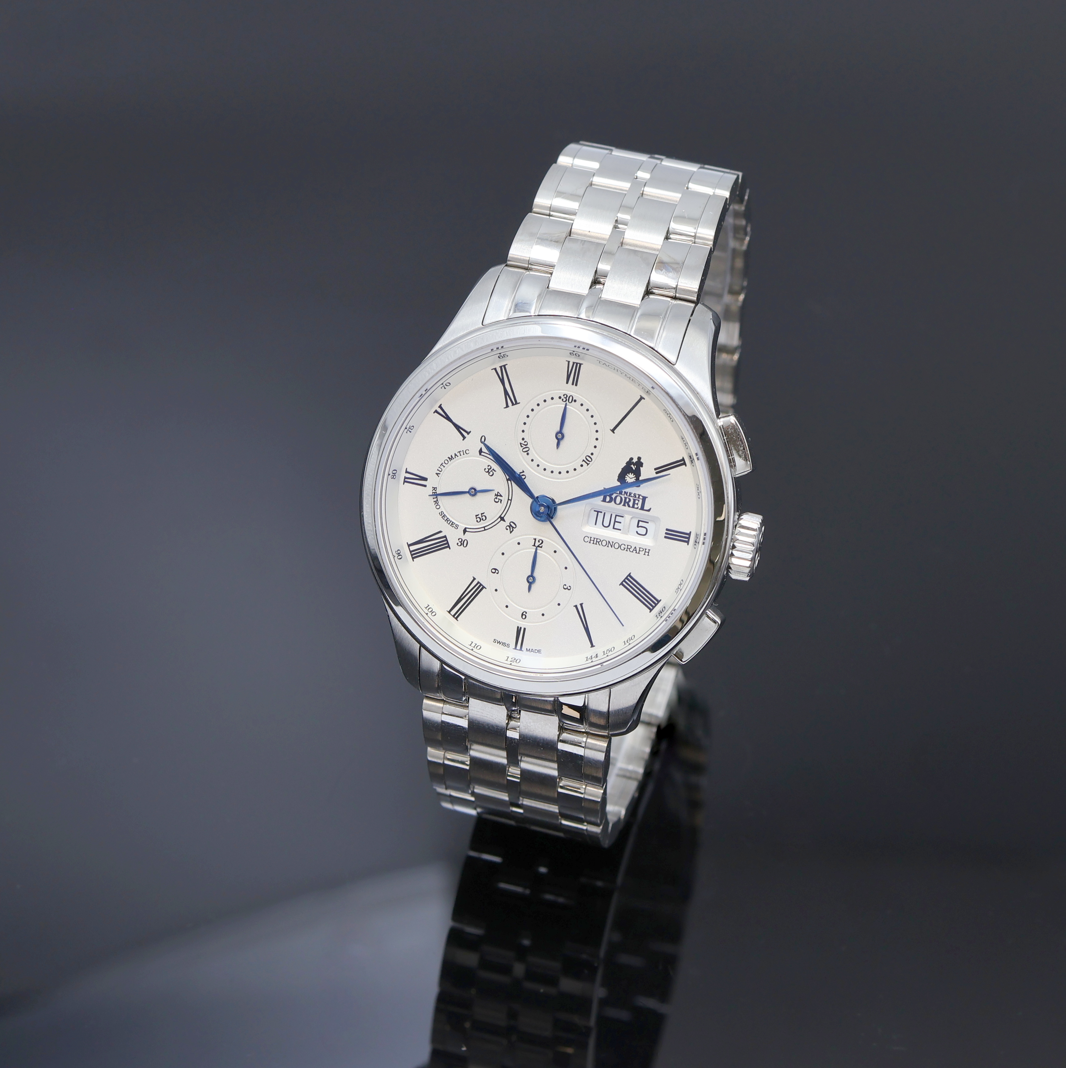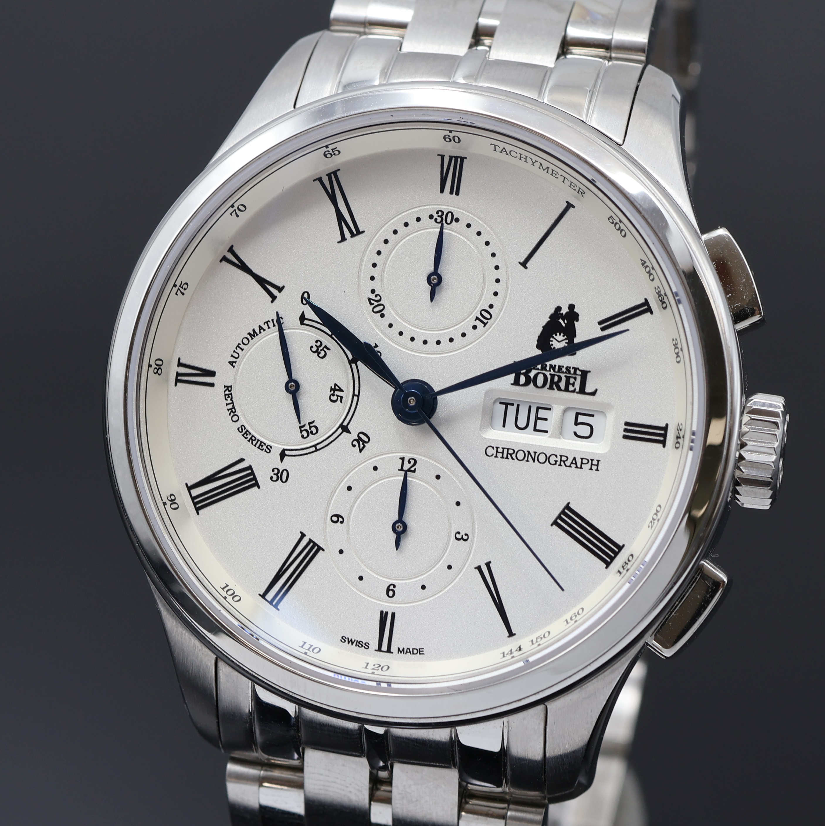 ERNEST BOREL Herrenchronograph Referenz GS8780R6, Automatik, beids. vergl. Edelstahlgeh.