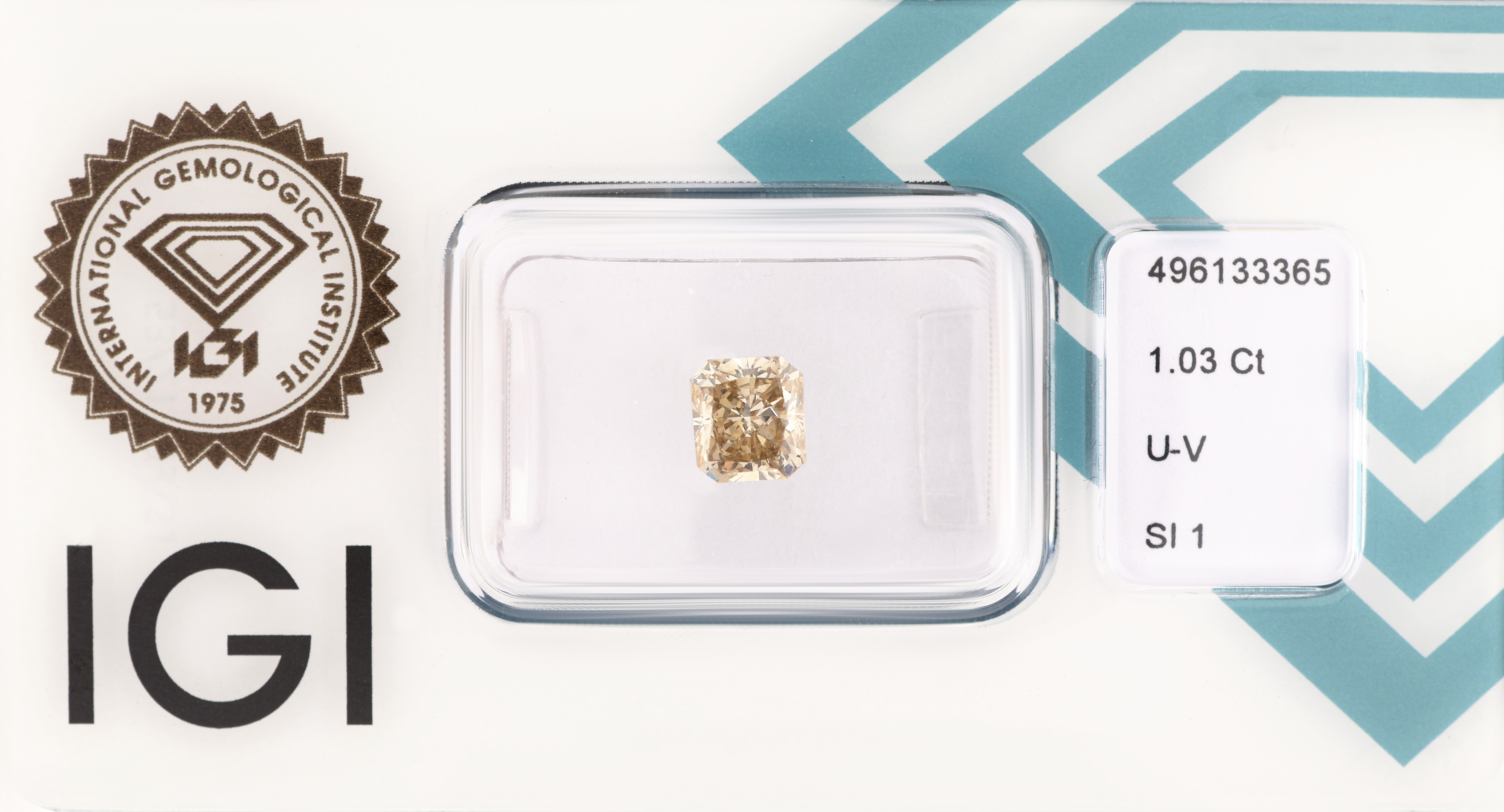 Loser Diamant im Rechteckschliff ca. 1.03 ct Getönt(U-V)/si1, eingeschweißt, IGI-Report
