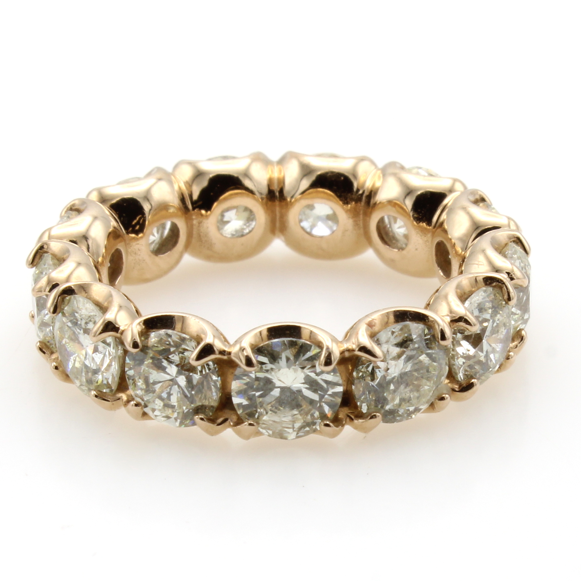 Memoryring mit Brillanten, RG 750/000, 13 Brill. zus. ca. 6.18 ct get.Weiß-fancy light yellow/p1-2, RW ca. 54 Schätzpreis: 13000, - EUR