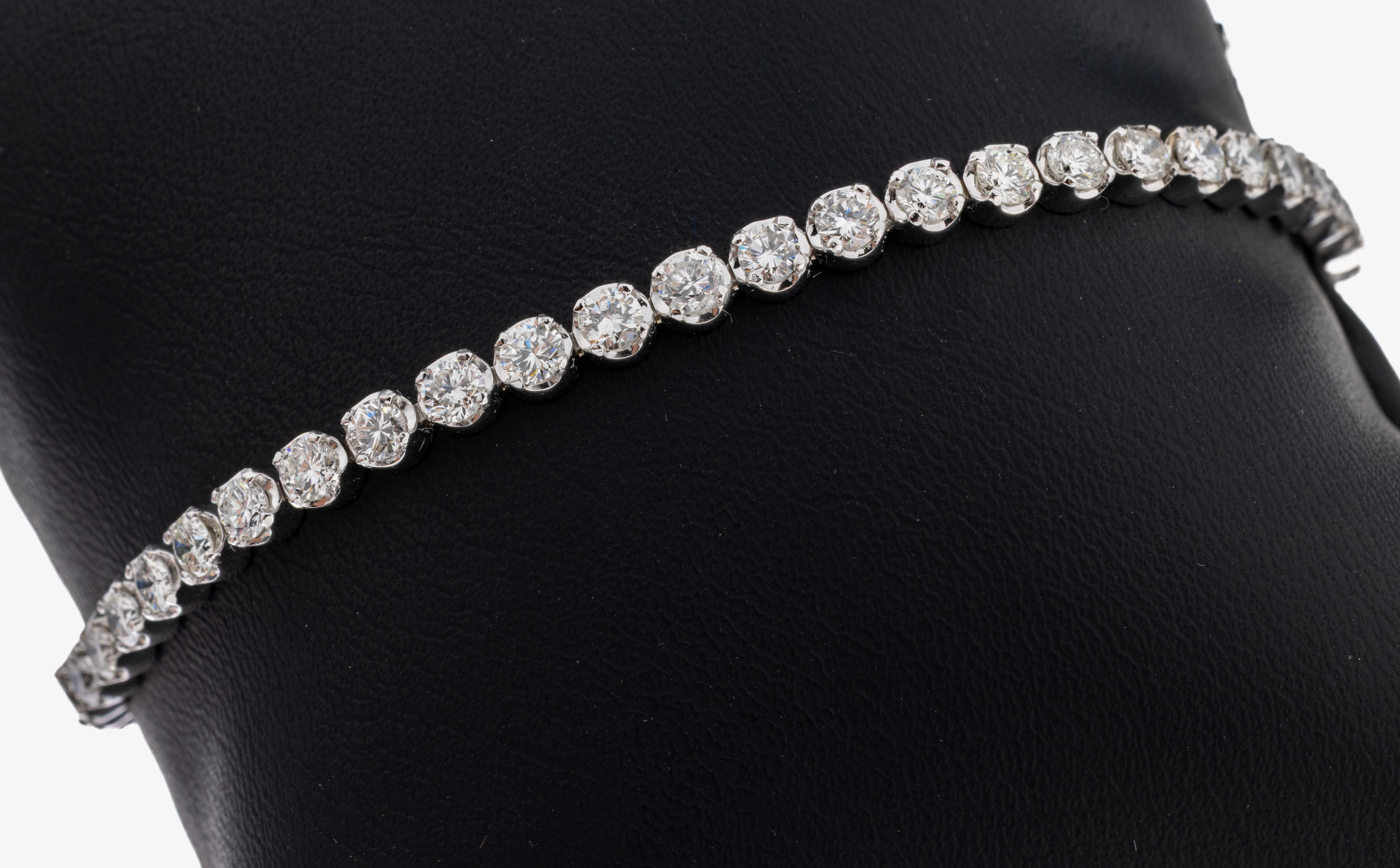 14 kt Gold Brillant-Armband, WG 585/000, 48 Brillanten zus. ca. 4.80 ct feines Weiß-