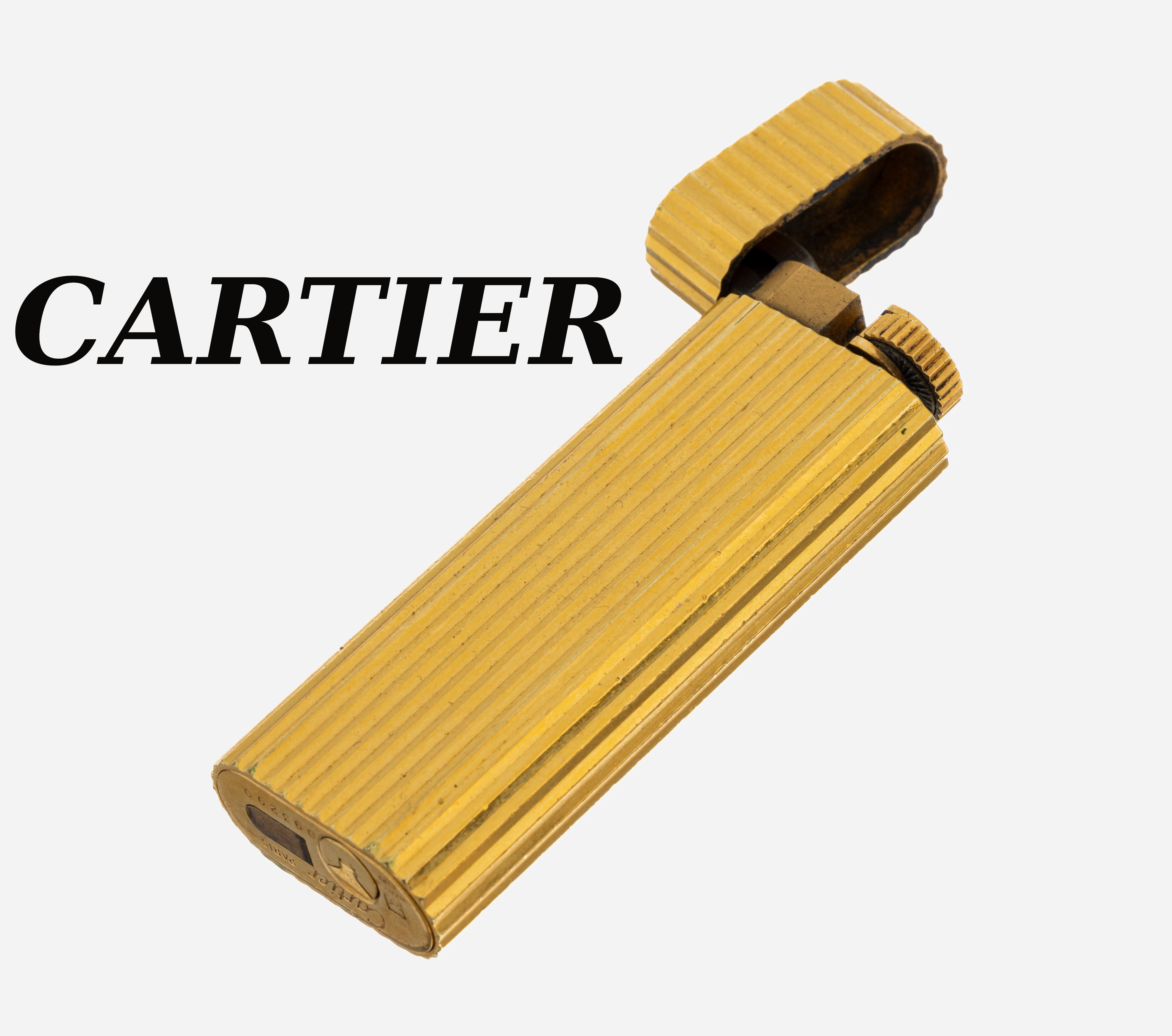 CARTIER Feuerzeug, Metall verg., gerillt, sign und num., Fkt. ungeprüft, L. ca.