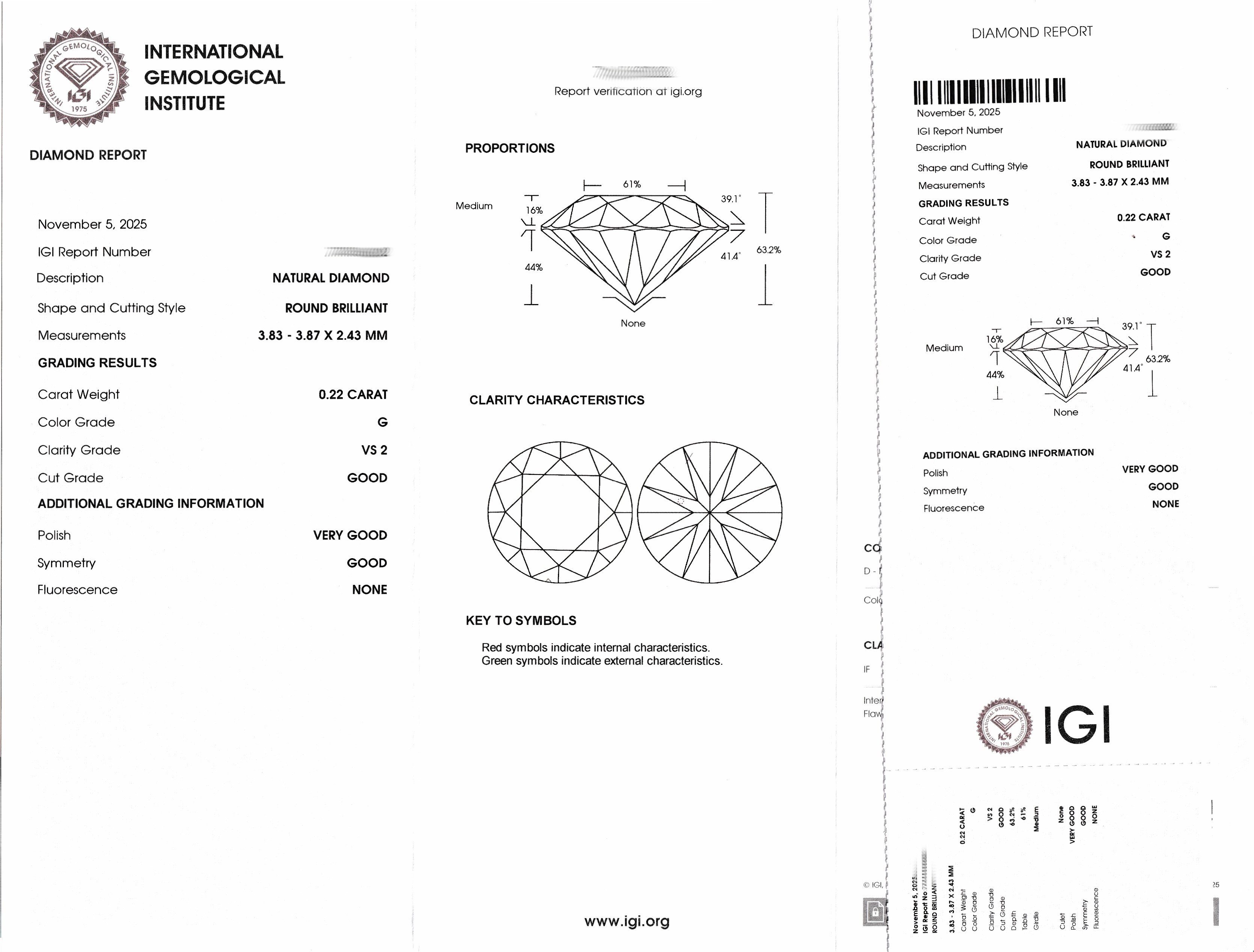 Loose brilliant , 0.22 ct Top Wesselton (G)/vs2, sealed, IGI-expertise attached Valuation Price: 360, - EUR