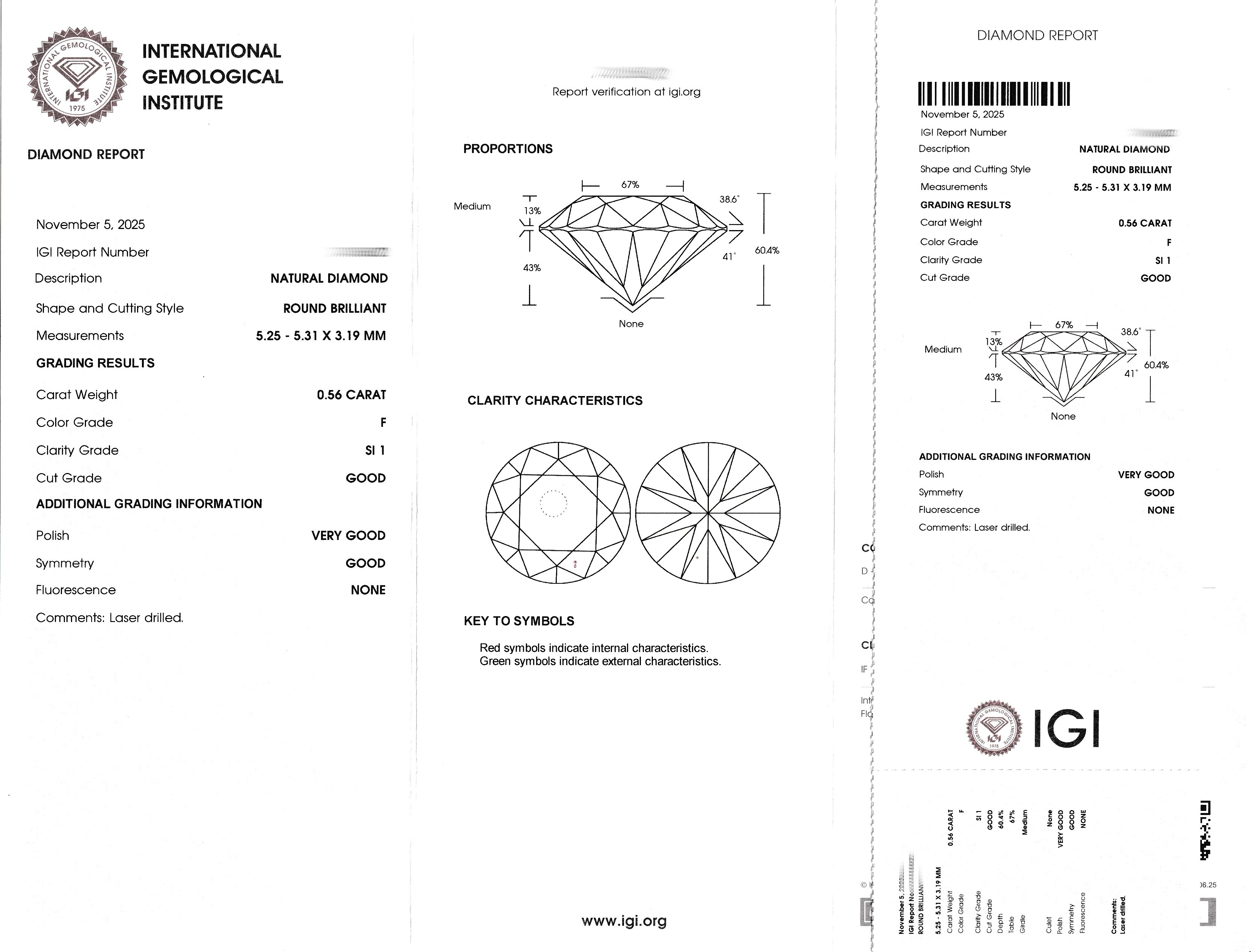 Loser Brillant, 0.56 ct feines Weiß(F)/si1, eingeschweißt, IGI-Expertise anbei Schätzpreis: 2000, - EUR