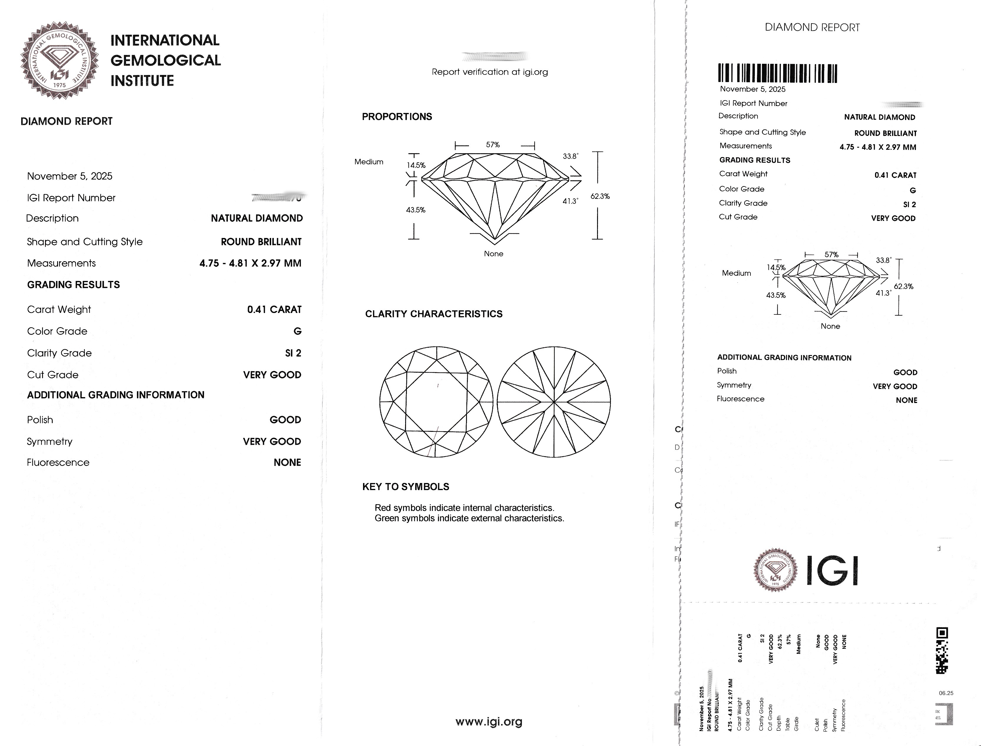 Loser Brillant, ca. 0.41 ct feines Weiß (G)/si2, eingeschweißt, IGI-Expertise anbei Schätzpreis: 940, - EUR