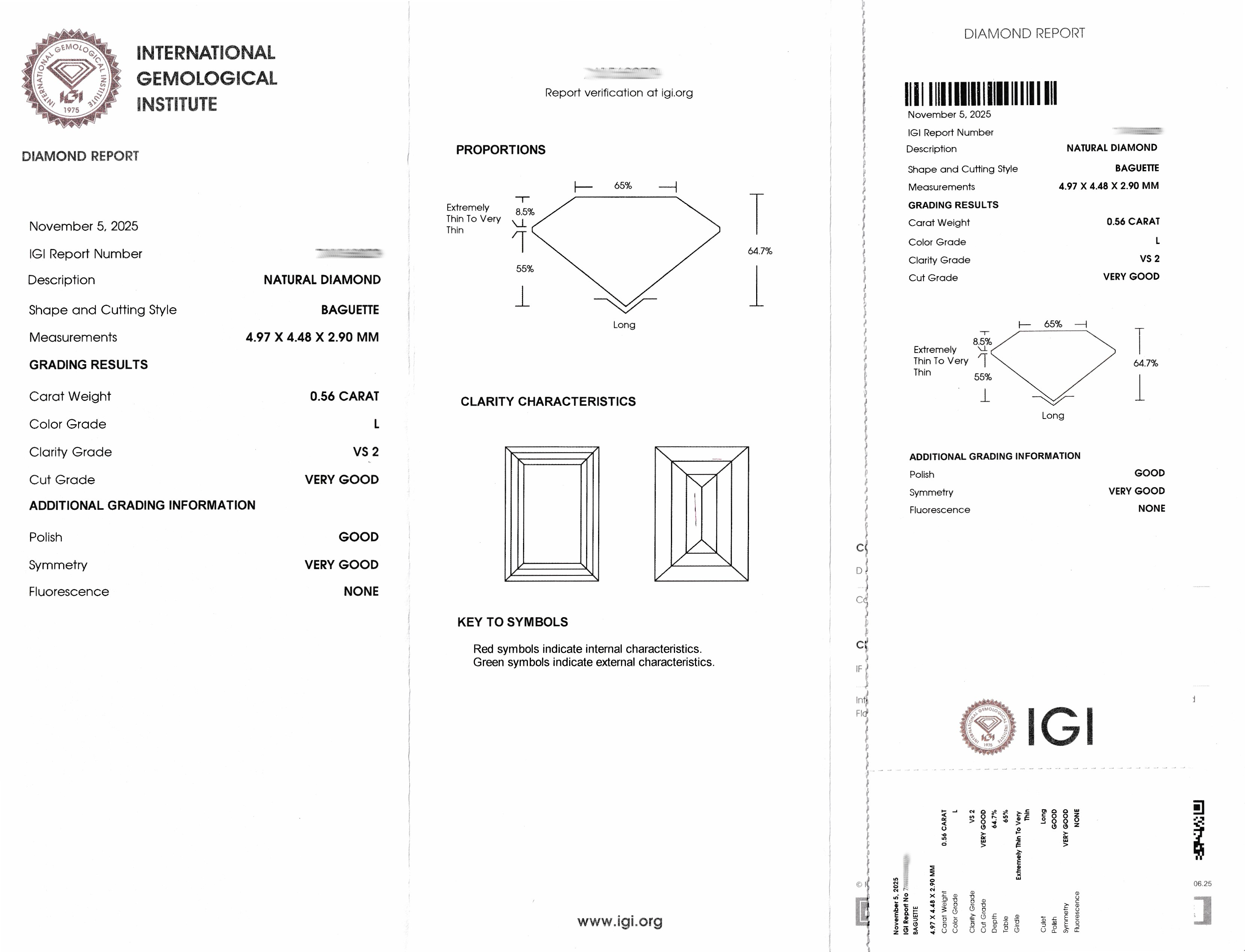 Loser Diamant, 0.56 ct get.Weiß(L)/vs2, Baguette, eingeschweißt, IGI-Expertise anbei Schätzpreis: 1100, - EUR