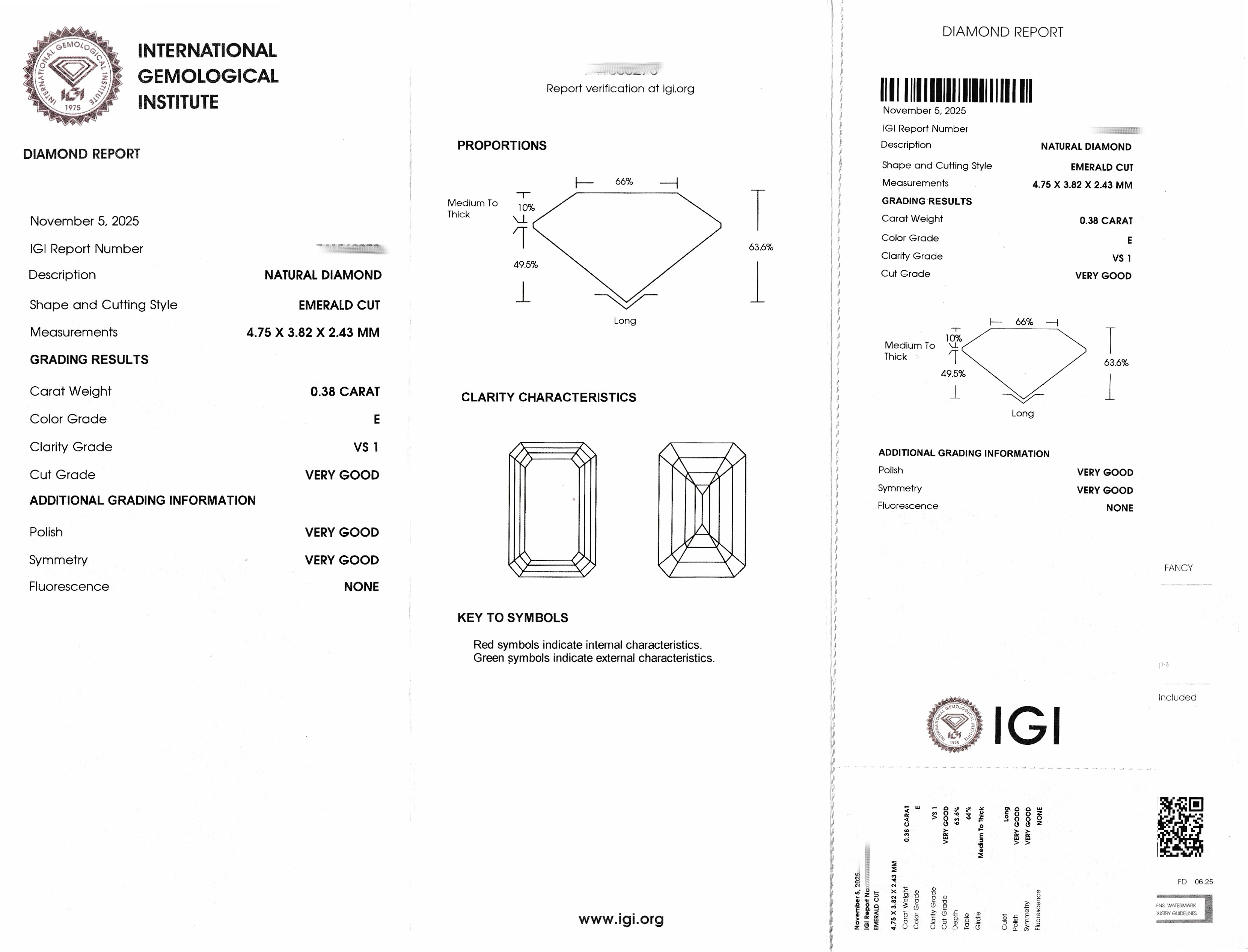 Loser Diamant, 0.38 ct hochfeines Weiß(E)/vs1, Emerald Cut, eingeschweißt, IGI-Expertise anbei Schätzpreis: 950, - EUR