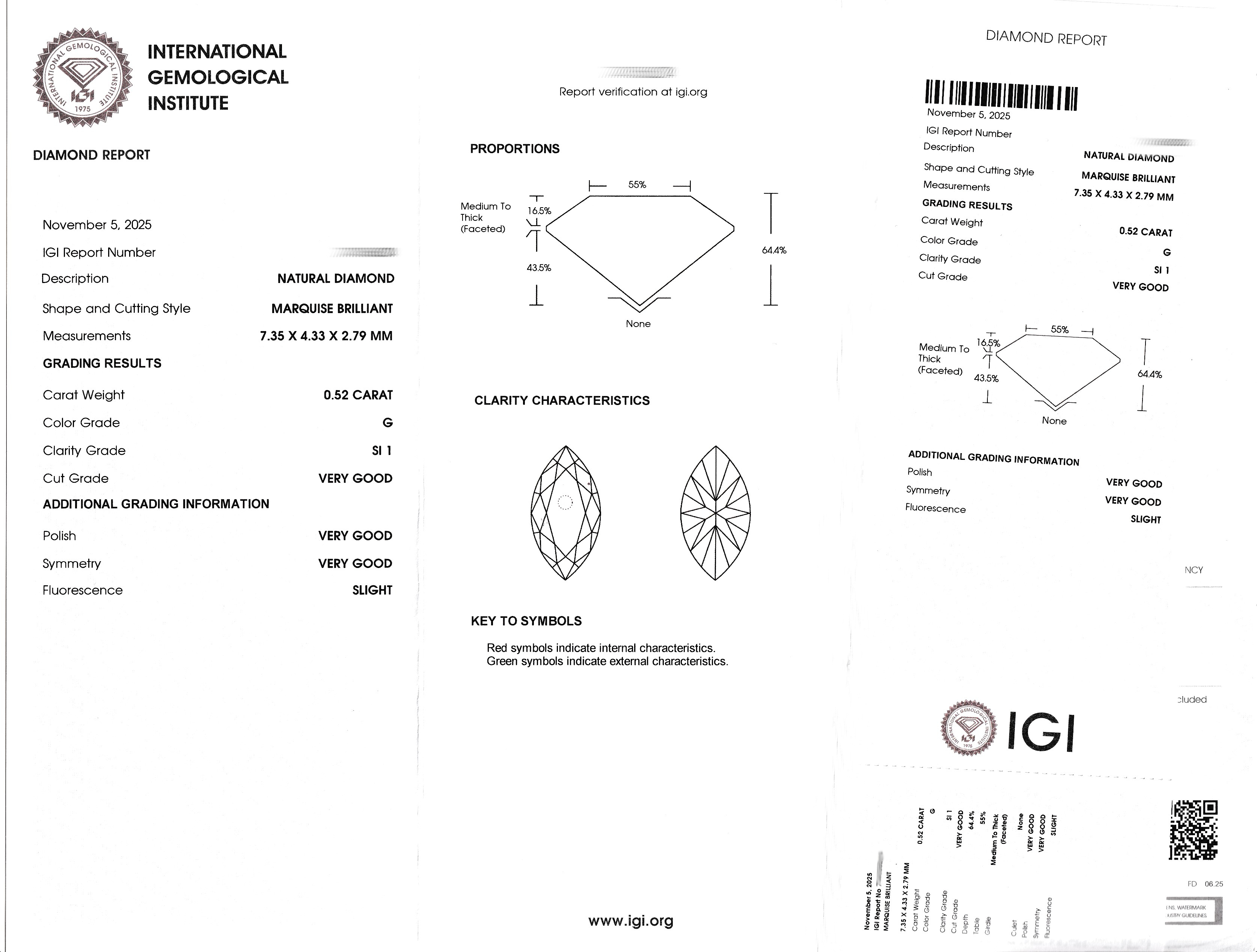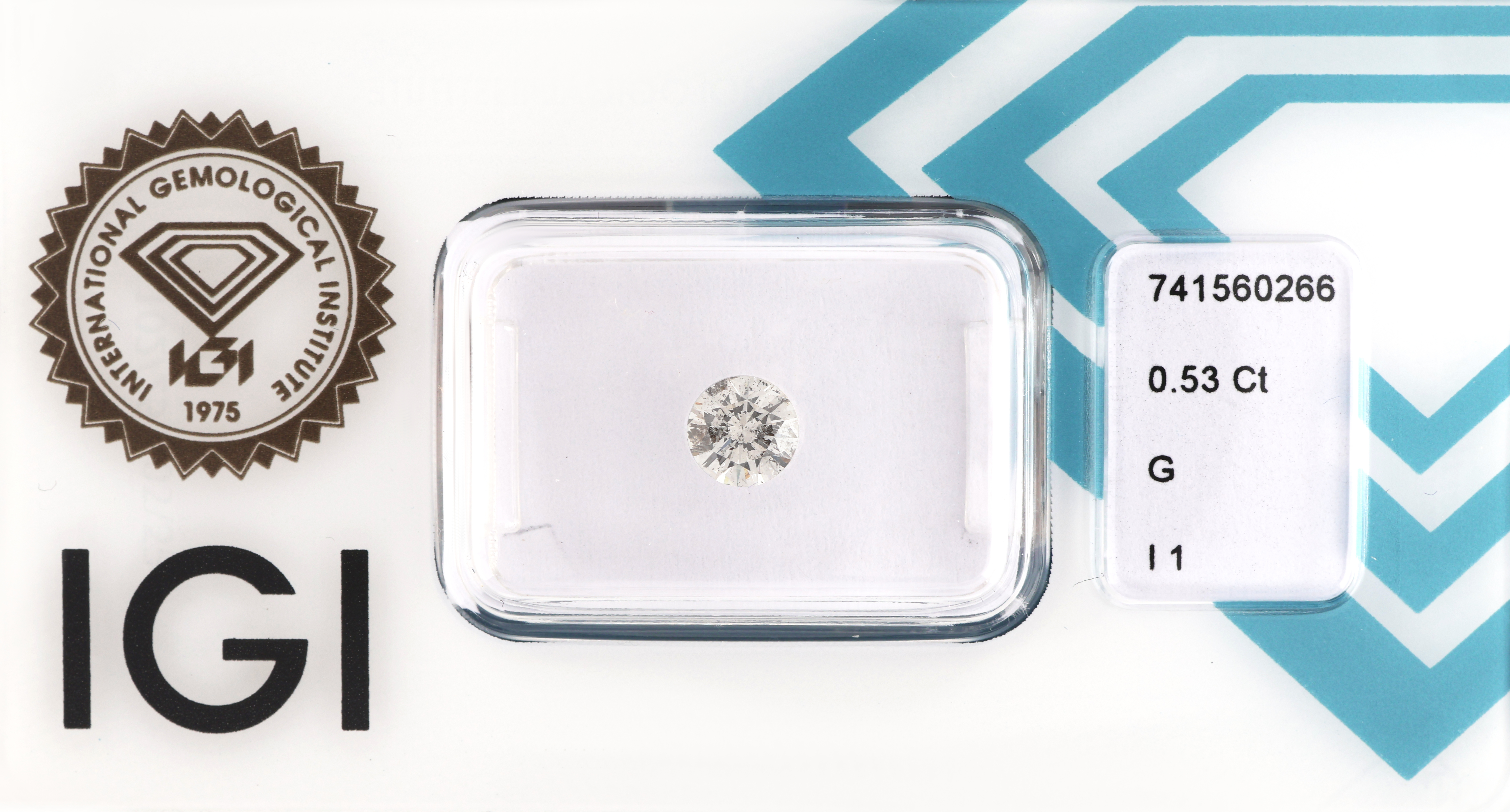 Loser Brillant ca. 0.53 ct feines Weiß(G)/p1, eingeschweißt, IGI-Expertise anbei Schätzpreis: 1200, - EUR
