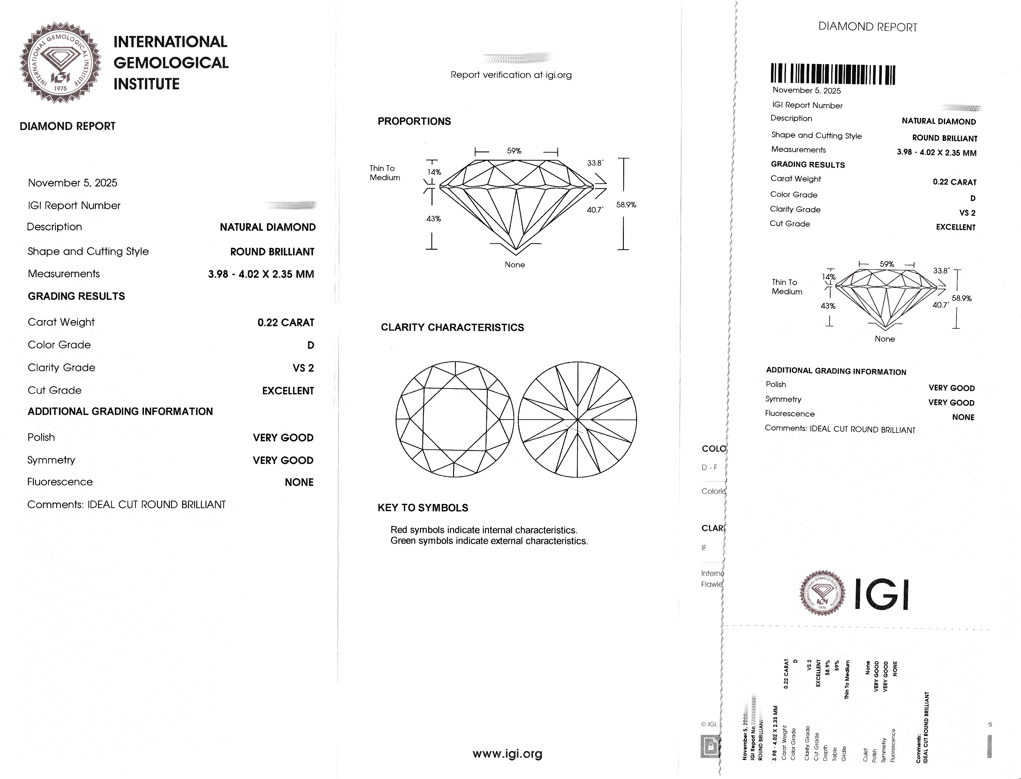 Loser Brillant, ca. 0.22 ct hochfeines Weiß (D)/vs2, eingeschweißt, IGI-Expertise anbei Schätzpreis: 420, - EUR