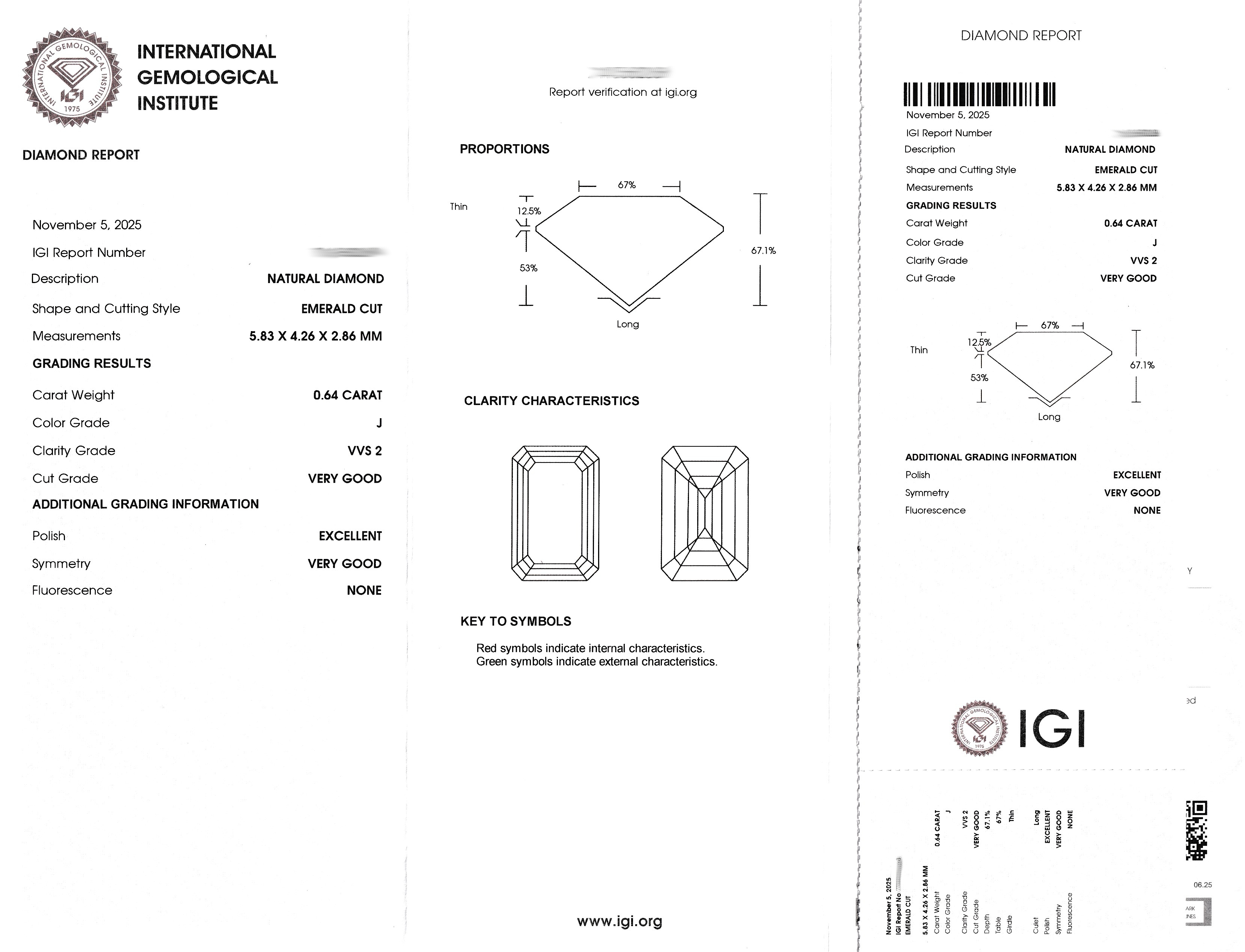 Loser Diamant, 0.64 ct l.get.Weiß(J)/vvs2, Emerald Cut, eingeschweißt, IGI-Expertise anbei Schätzpreis: 2050, - EUR