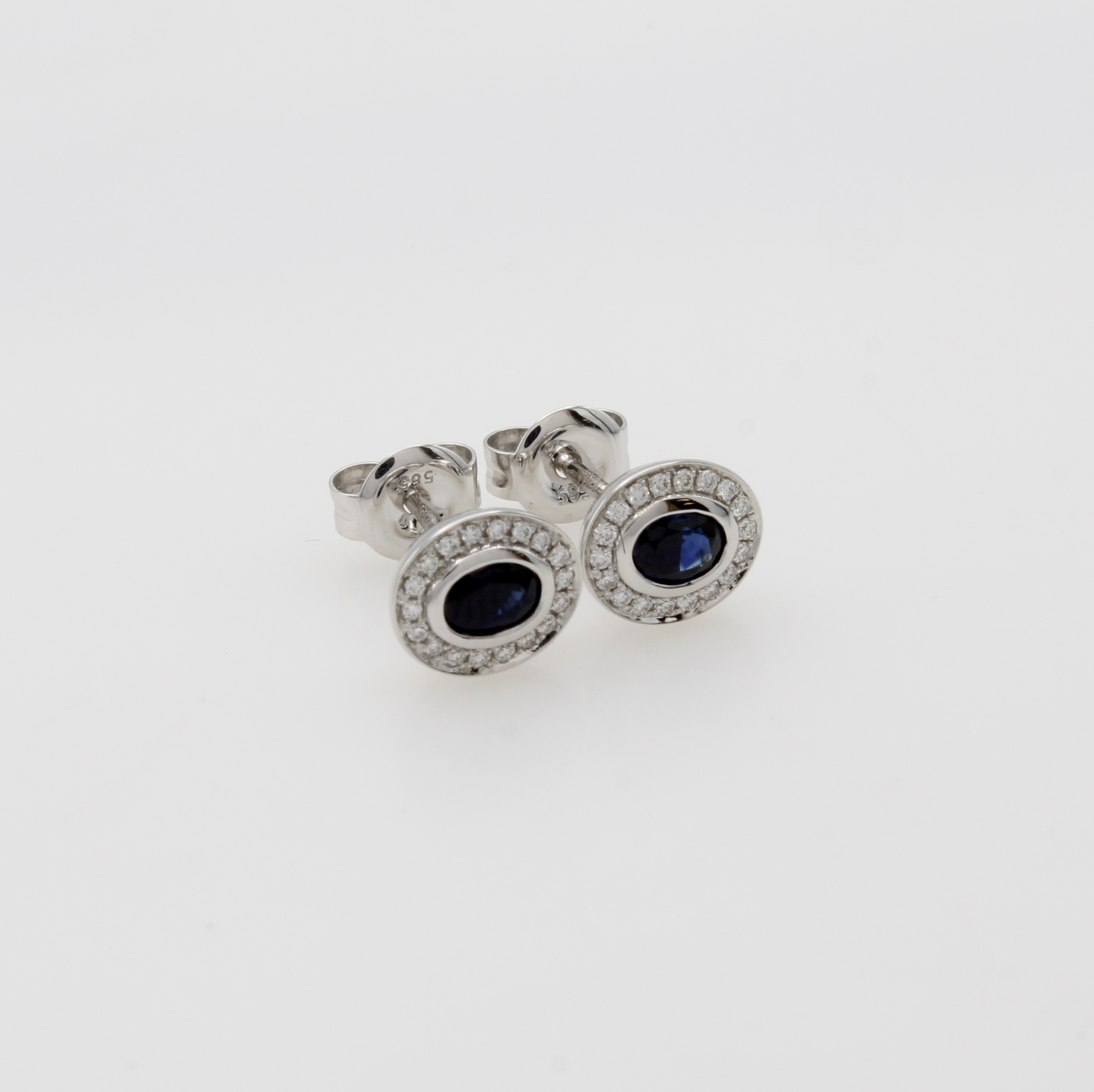 Paar Ohrstecker mit Saphiren, WG 590/000, 2 ovale Saphire umgeben v. Brill. zus. ca. 0.08 ct Weiß/si Schätzpreis: 1300, - EUR