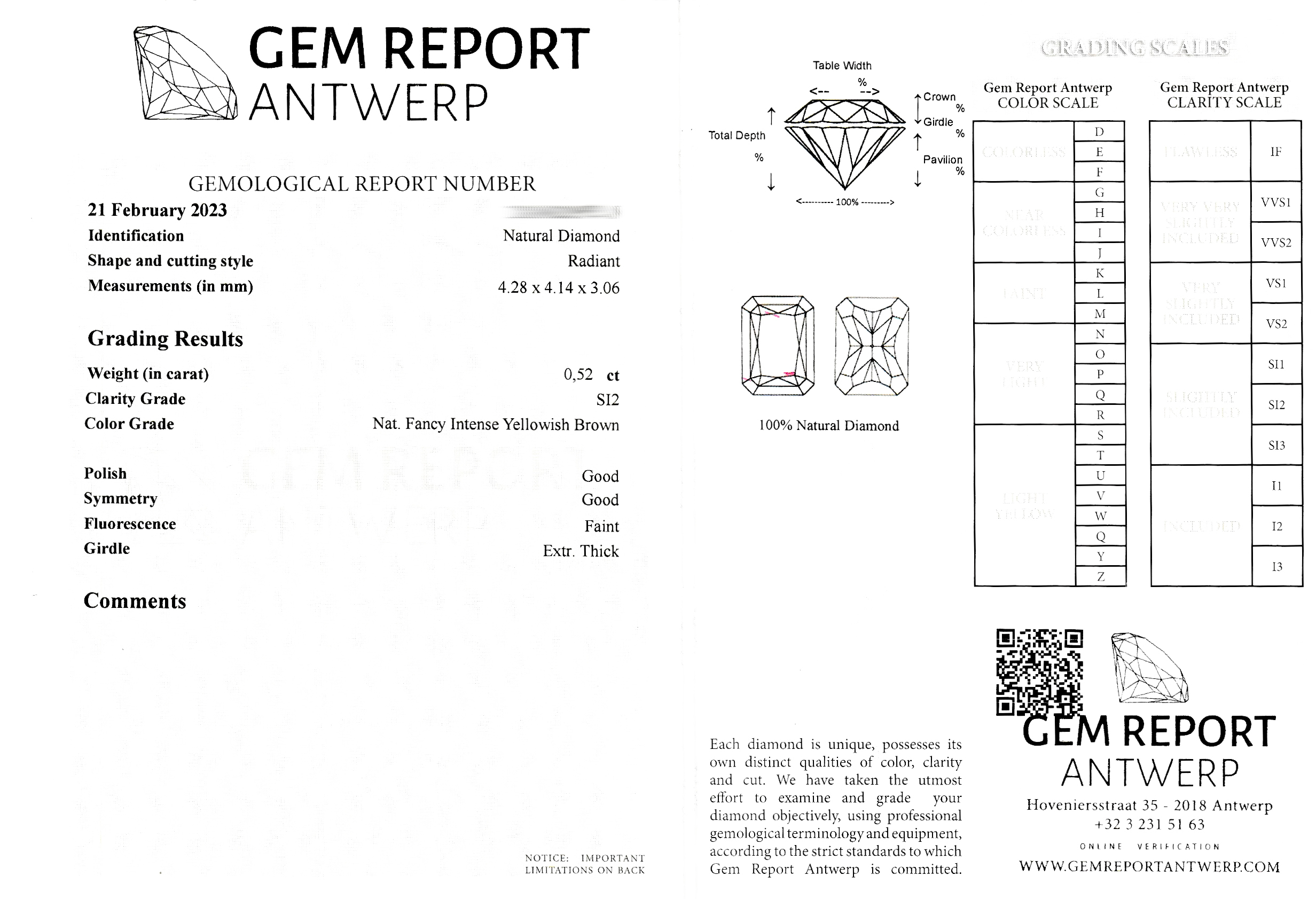 4.14 x 3.06 mm, Politur Gut, Symmetrie Gut, Fluoreszenz Schwach, REM REPORT Antwerp-