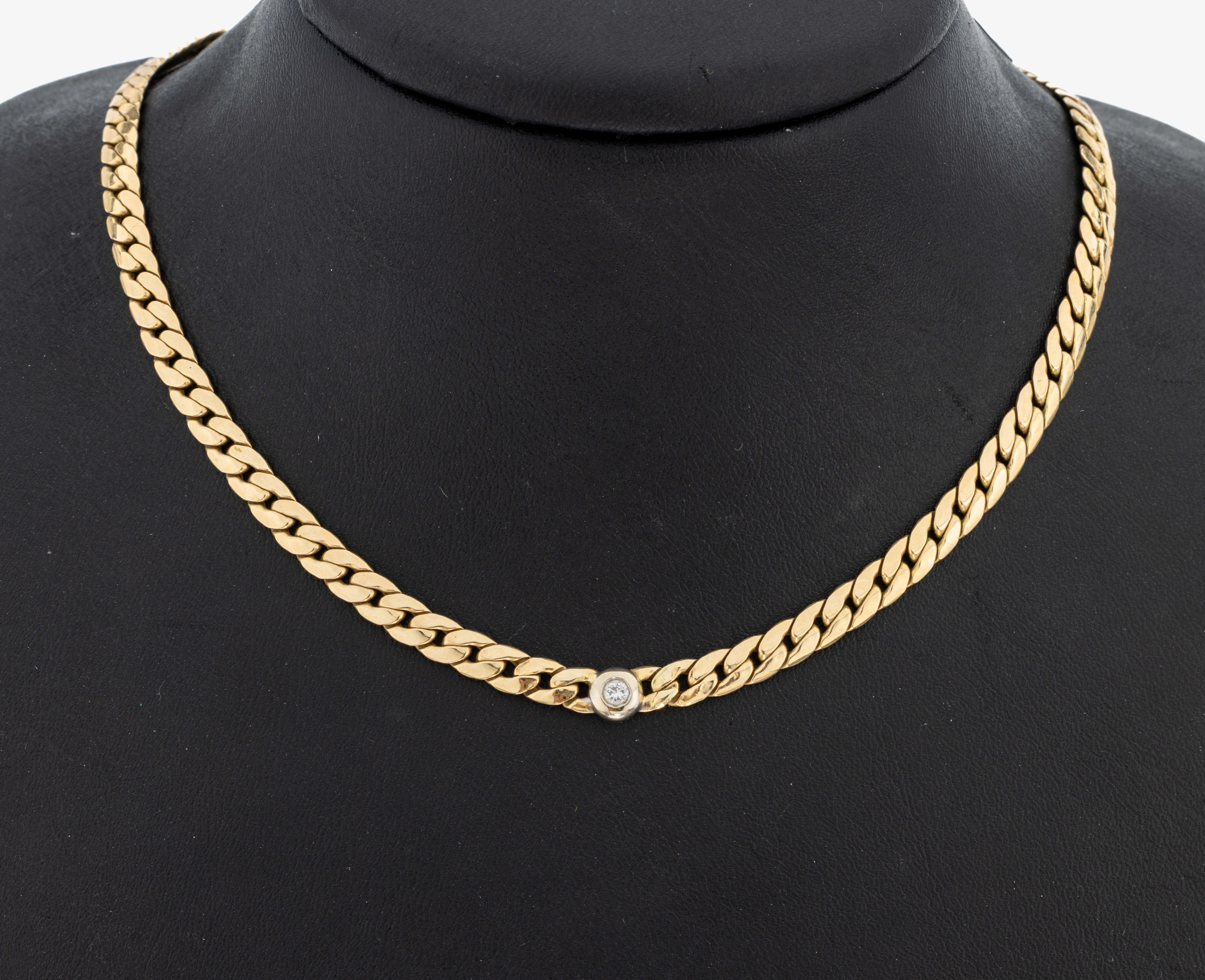 14 kt Gold Brillant-Collier, GG 585/000, mittig Brillant in rhod. Zargenfassung ca.