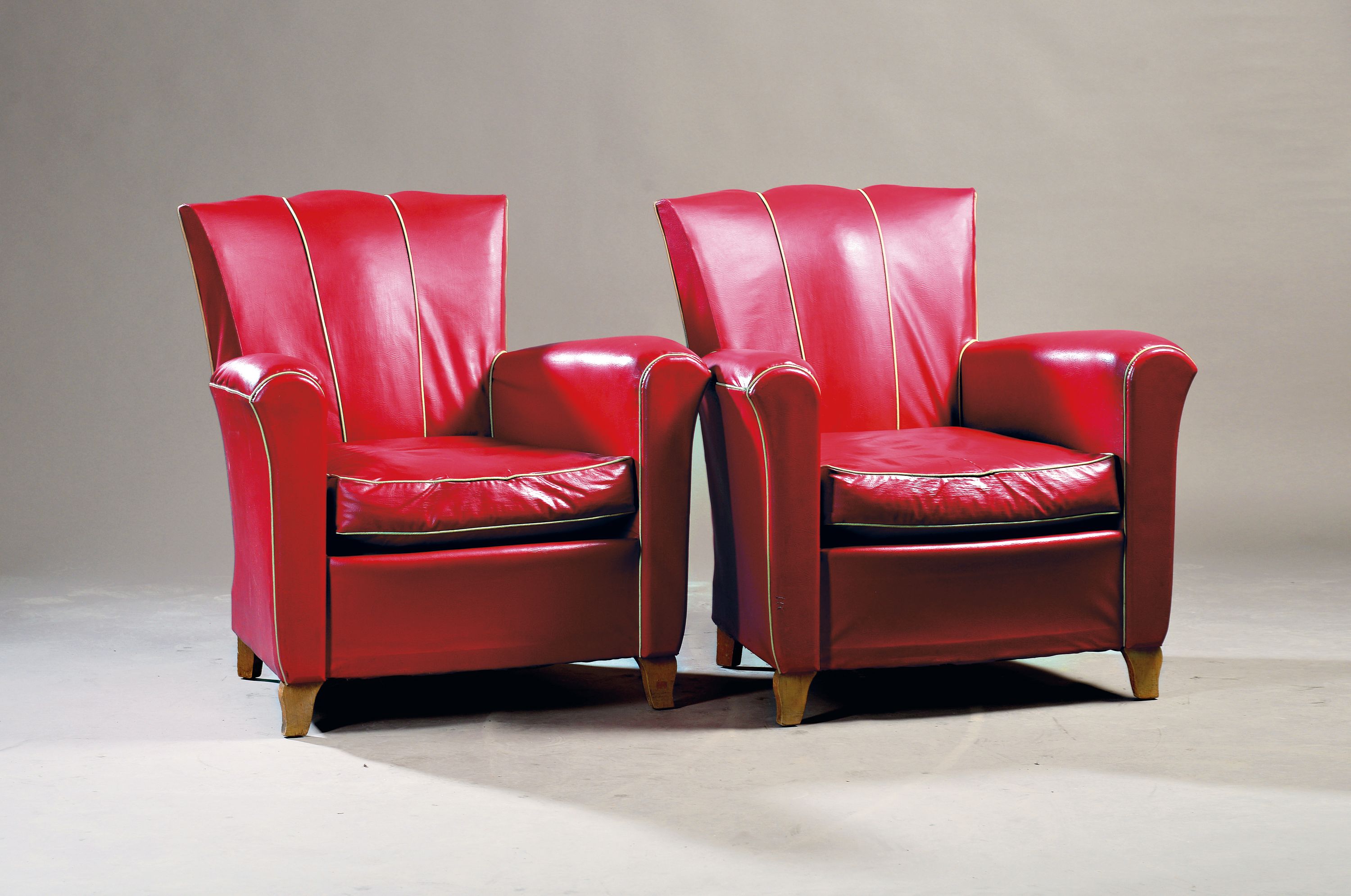 Paar Sessel, Art-Deco, um 1930, rotem Leder bezogen, ca. 79x75 cm, EZ 2