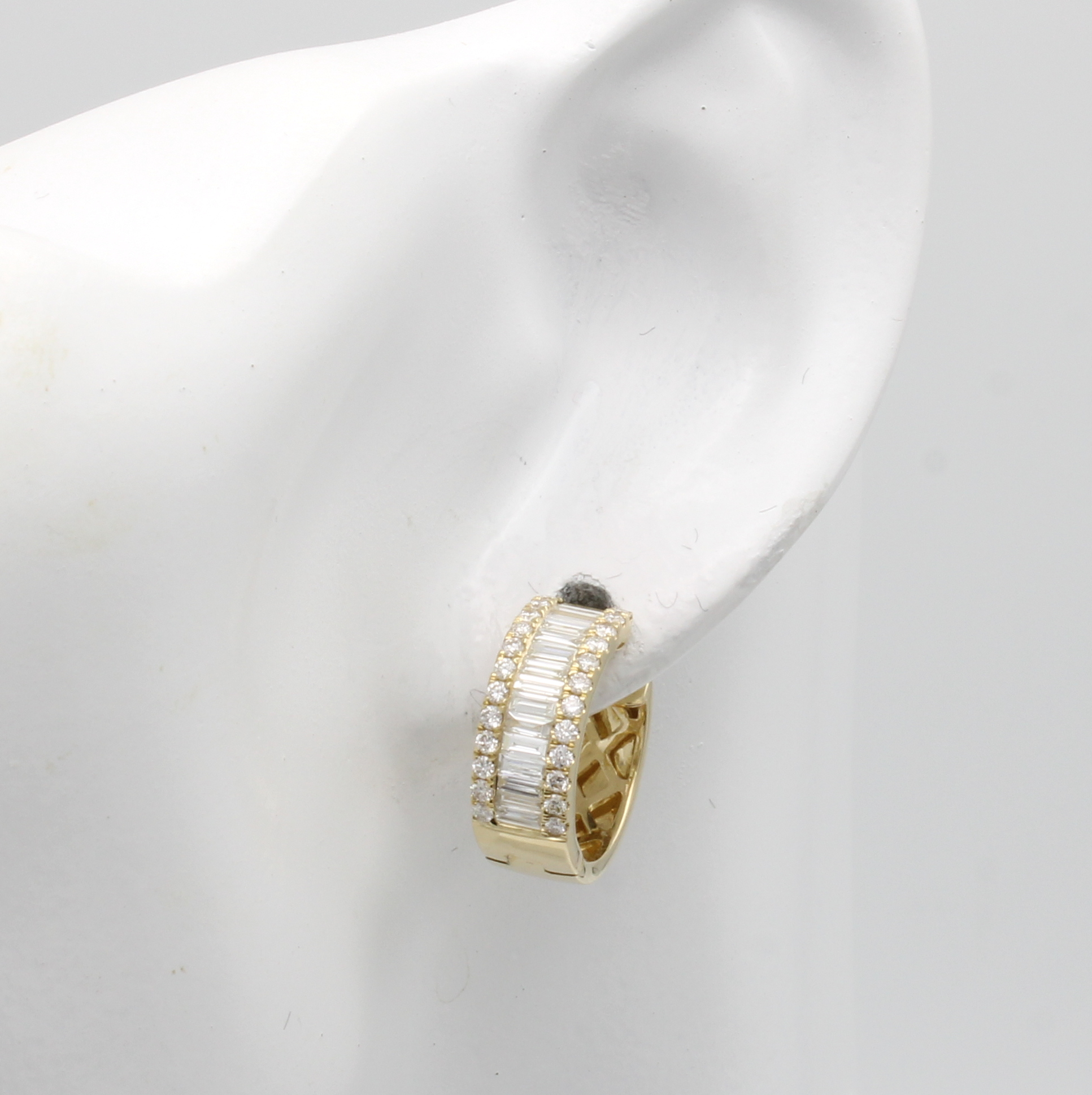 Paar Creolen mit Diamanten und Brillanten, GG 585/000, 84 Diamantbag. u. Brill. zus. ca. 1.25 ct feines Weiß+/vvs-vs, D. ca. 1.3 cm Schätzpreis: 5100, - EUR