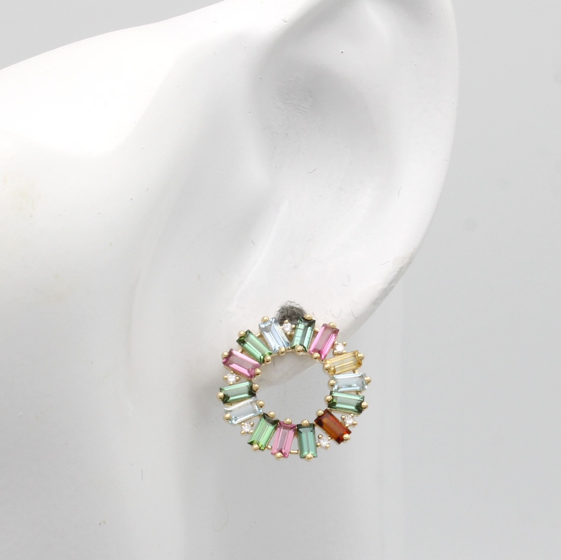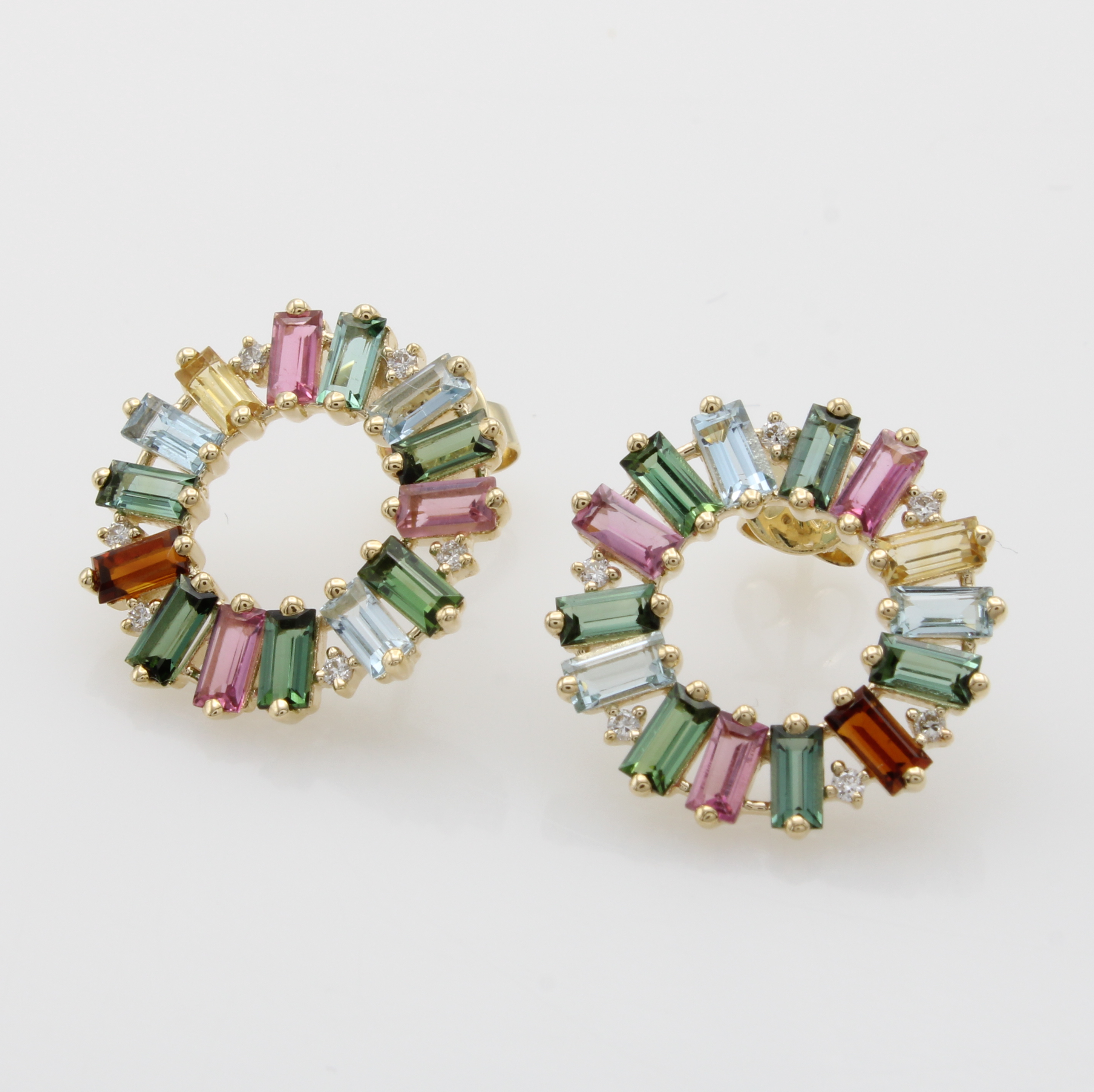 Paar Ohrstecker mit Farbsteinen und Brillanten, GG 585/000, Turmaline zus. ca. 2.14 ct, Citrine zus. ca. 0.48 ct, Aquamarine zus. ca. 0.63 ct, Brill. zus. ca. 0.10 ct feines Weiß/ vs Schätzpreis: 2140, - EUR